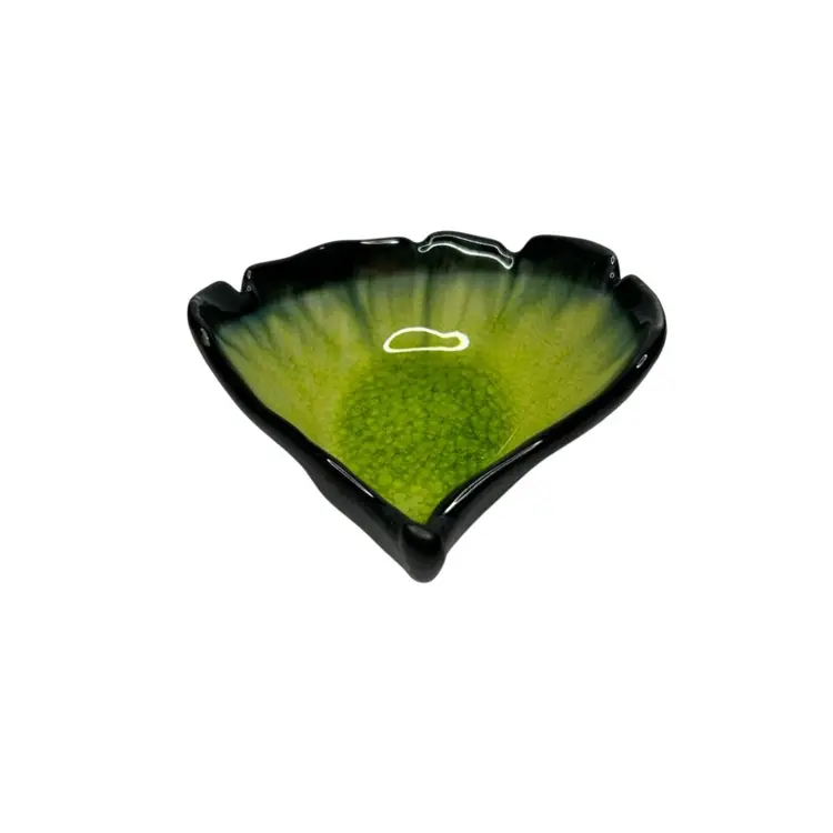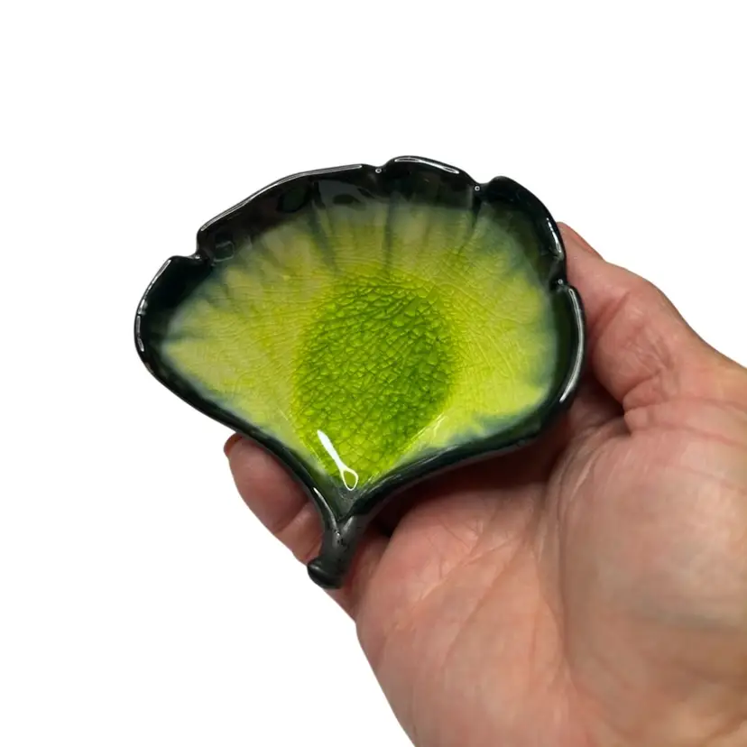 Green Cracked Glass Ceramic Leaf @3 1/2x 3 1/2