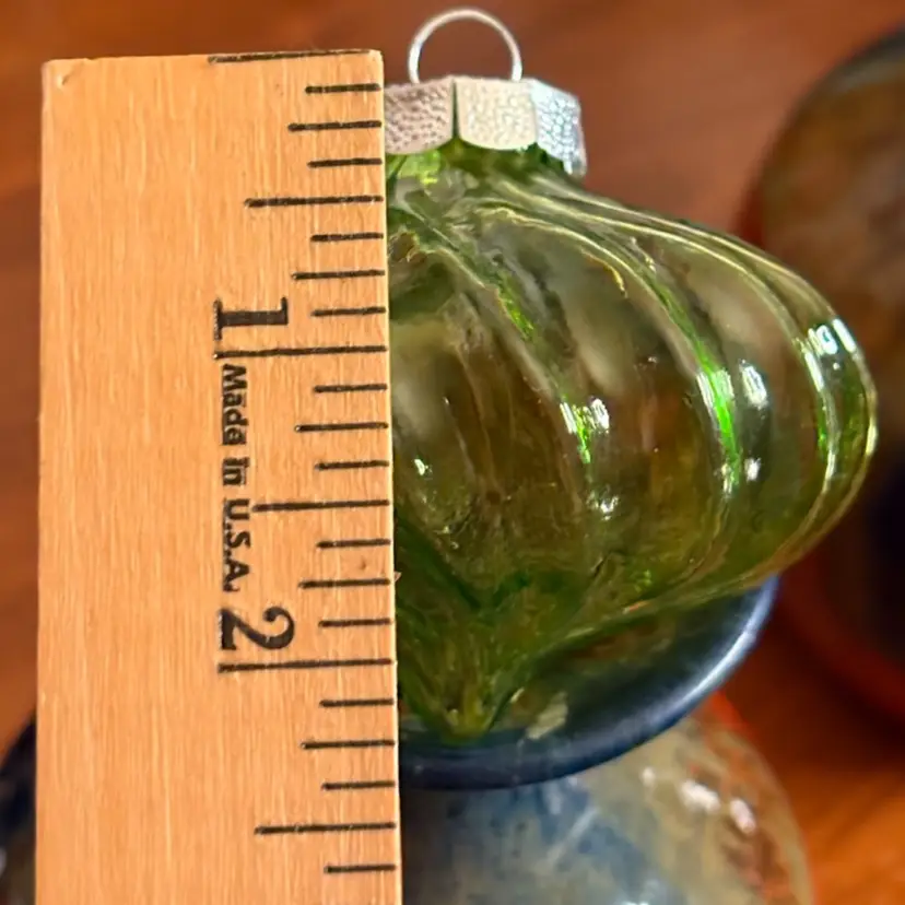 Glass ornament in the Grinchy Green Thin glass with ridges Short and squat