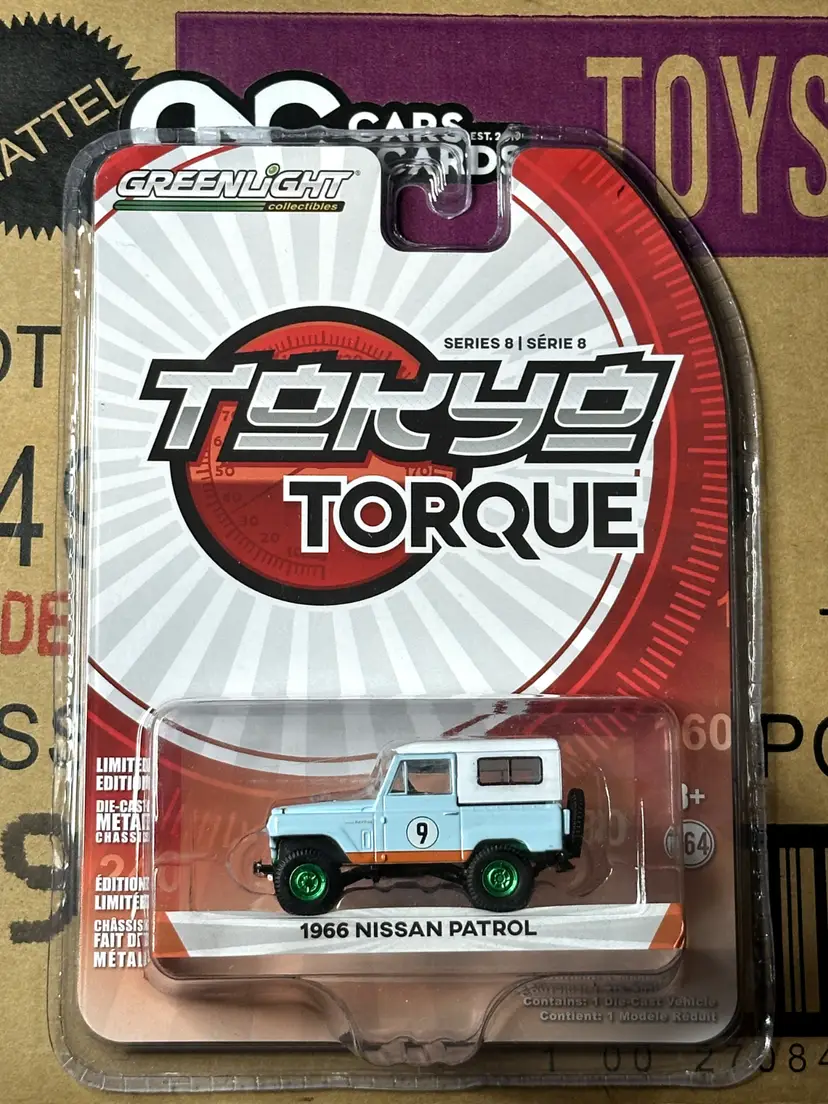 Greenlight Tokyo Torque 1966 Nissan Patrol Green Machine ChasePlease see photos for exact card condition (use zoom function)ALL HOT WHEELS, MATCHBOX AND GRADED CARDS ARE SHIPPED IN A SMALL BOX