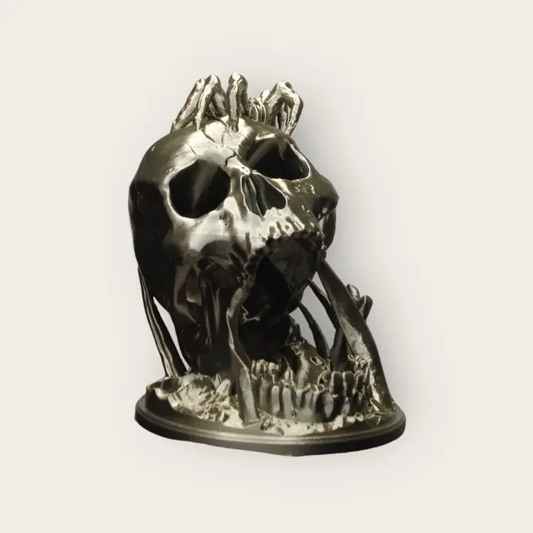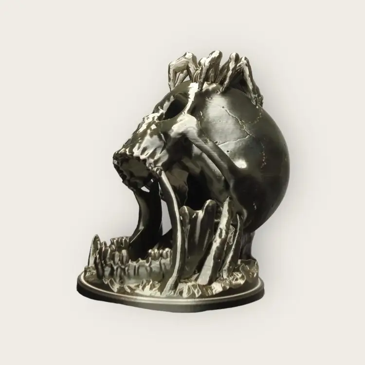 Drop the dice through either eye socket and get maximum damage from your roll. Can come in any variety of colors you want, but the best seller is the one pictured in Silk Bronze, Silk Black and Silk Pink are also big sellers! After buying send a message if you'd like a custom color, or else we'll reach out to you!