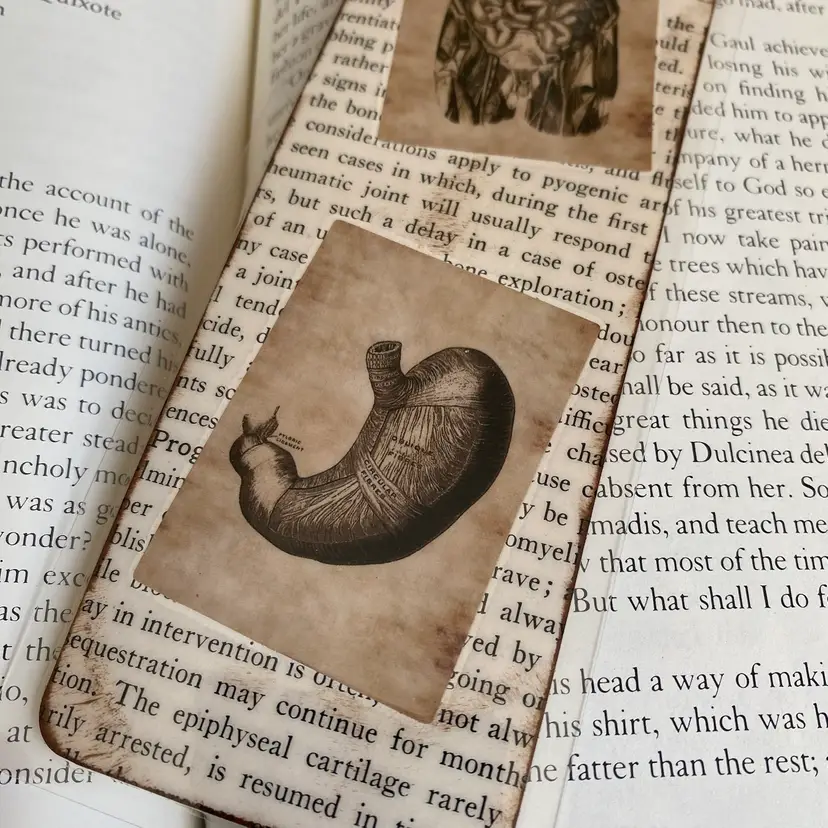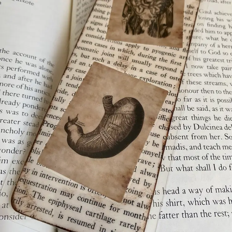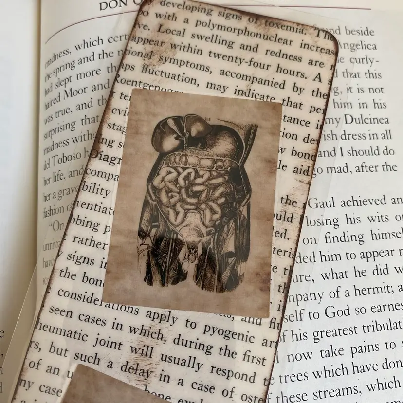 Made from vintage medical dictionary pages. Double sided pages with single sided stickers design. Laminated with 5MIL and no tassel.