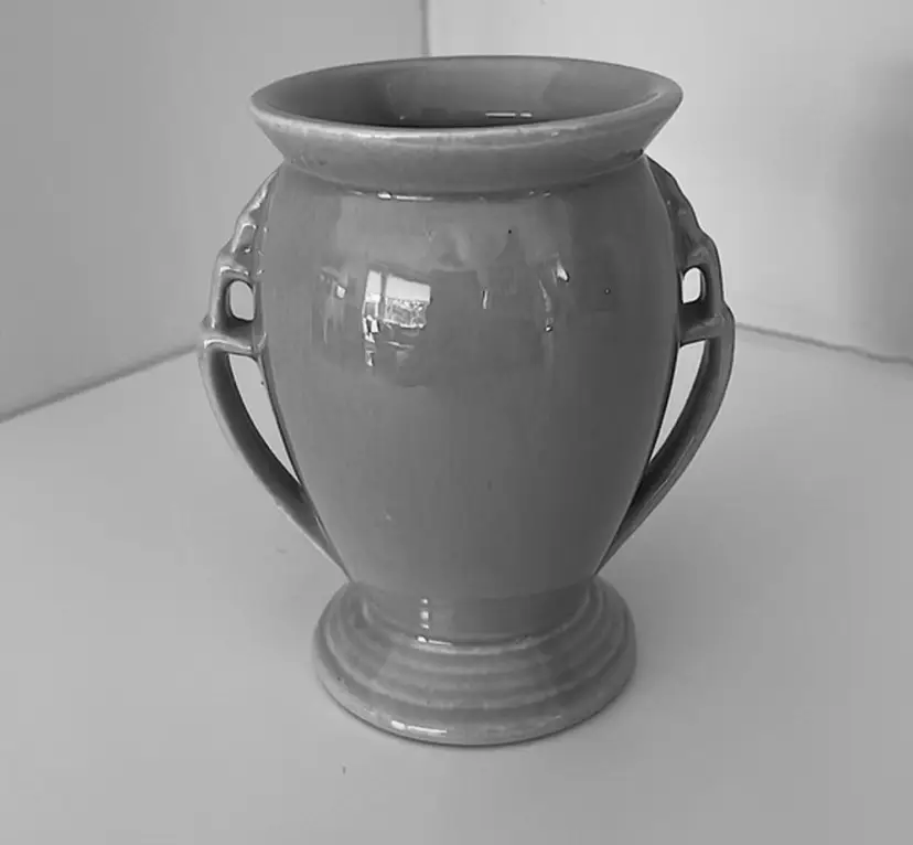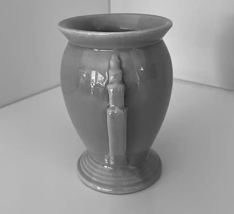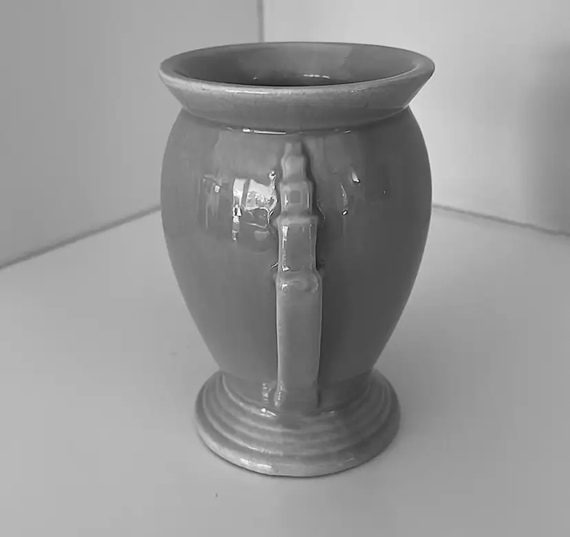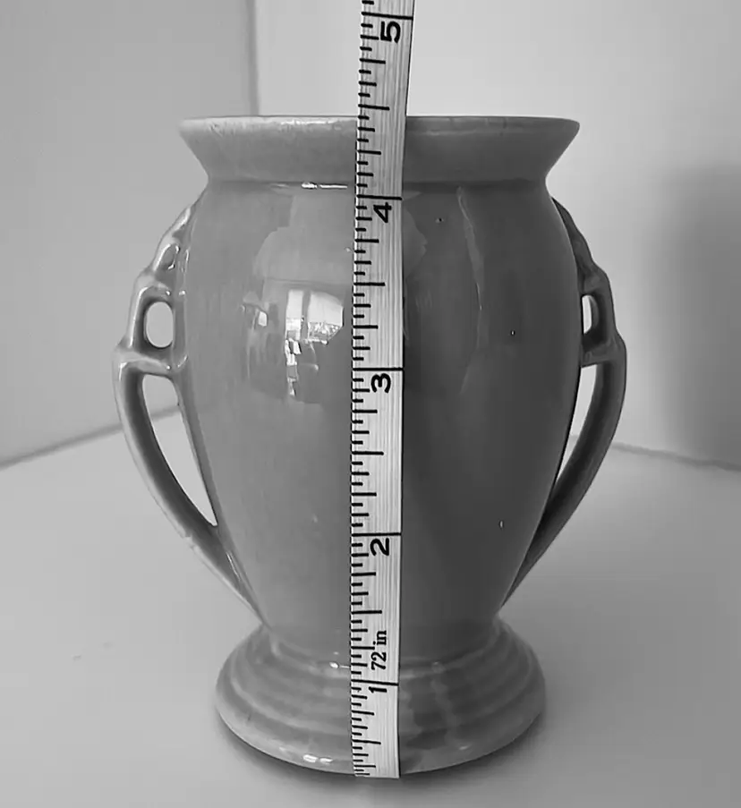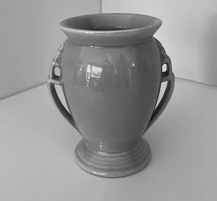 Haeger Pottery, Dundee, Illinois, gray urn, handles. Original sticker, 4.5” tall Please see pictures for measurements.