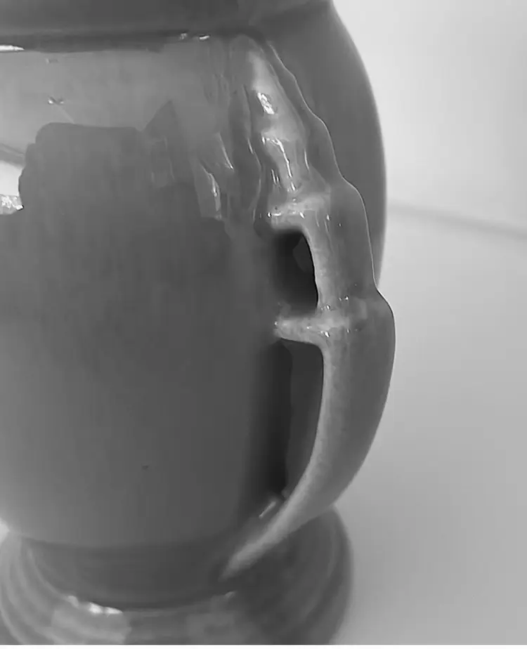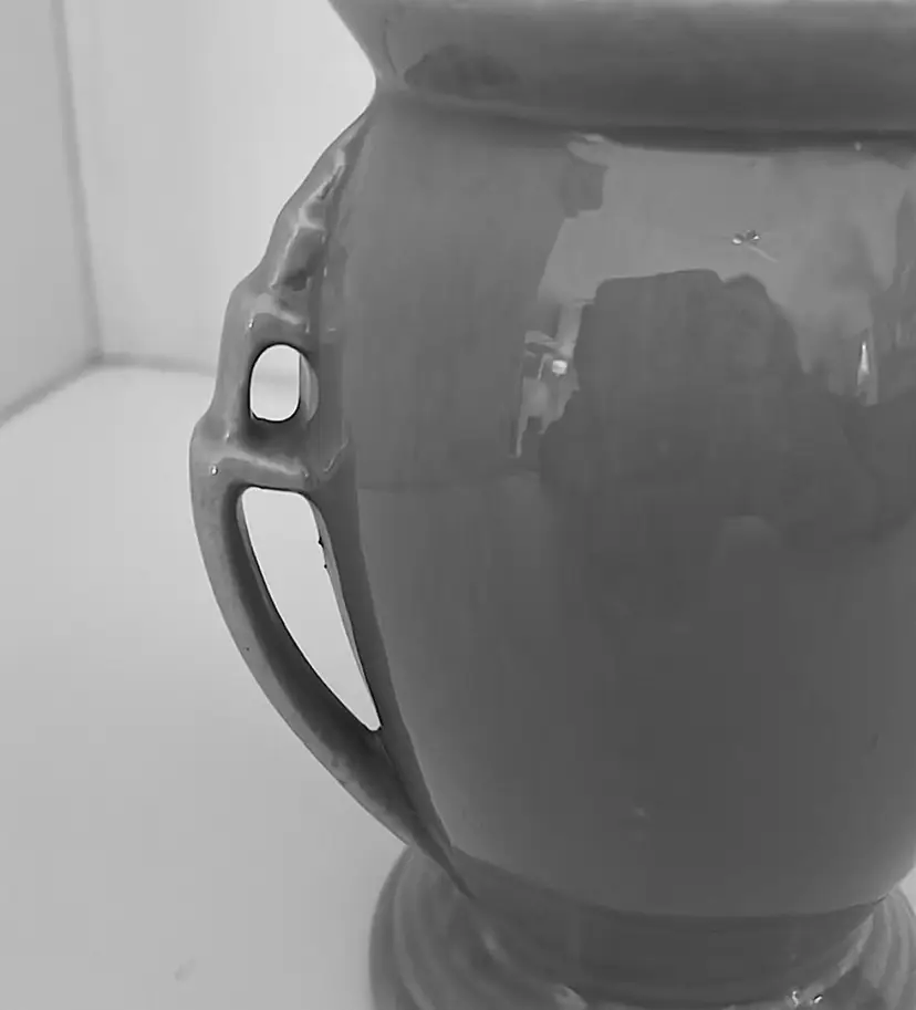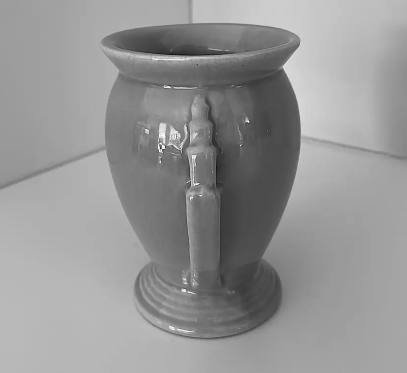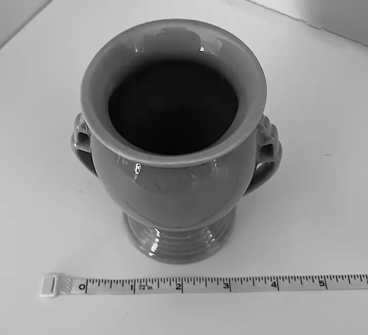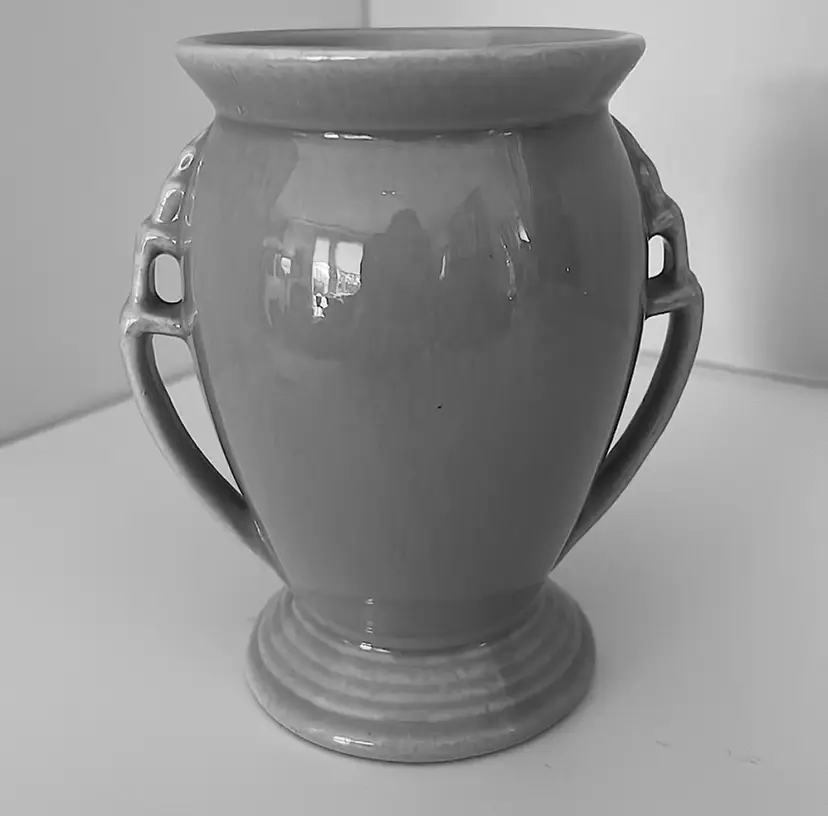Haeger Pottery, Dundee, Illinois, gray urn, handles. Original sticker, 4.5” tall Please see pictures for measurements.