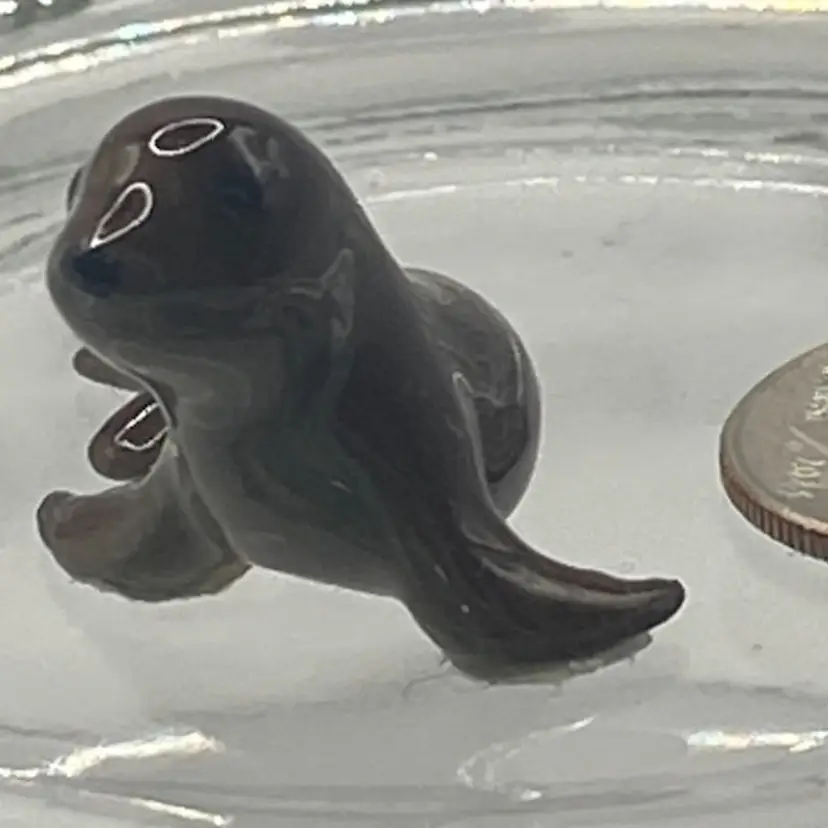 Awwww… isn’t this one so cute? The baby seal is in very good condition with no chips or cracks. It has paper remaining on the bottom from original packaging. Please see photos. Dime is for size only.