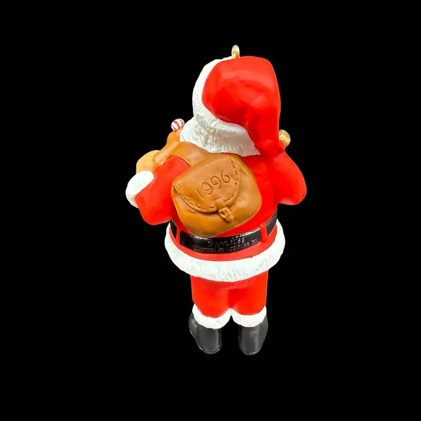 The Hallmark 1996 Keepsake of Membership SANTA CLAUSE Collectors Club Ornament is a vintage ornament featuring a Santa Claus shape in multicolor. This decorative hanging ornament is part of the Hallmark Keepsake Ornament collection and is an original piece manufactured in 1996. Perfect for Christmas celebrations, this collectible item adds a festive touch to holiday decor with its holiday-themed design and vintage appeal.