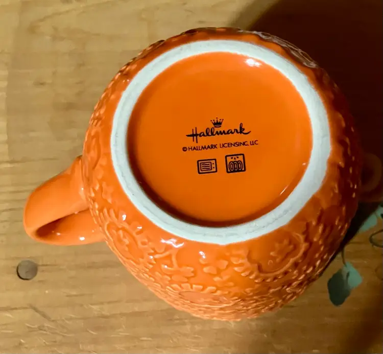 Hallmark “Fabulous Friend” orange ceramic mug. Embossed floral design. Capacity - 16 ounces. No chips or cracks.