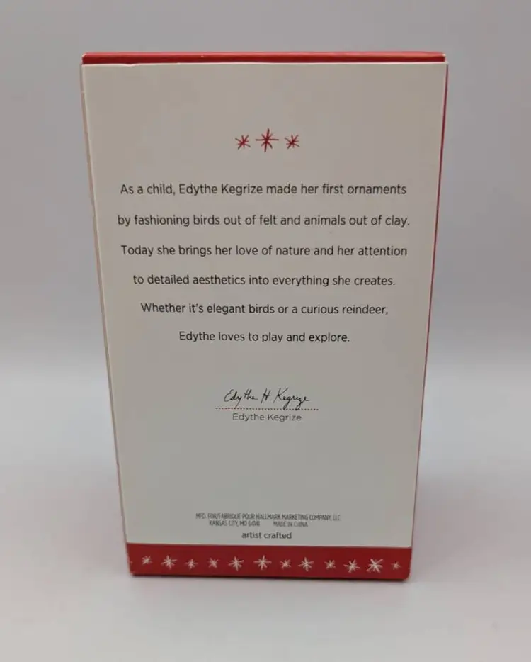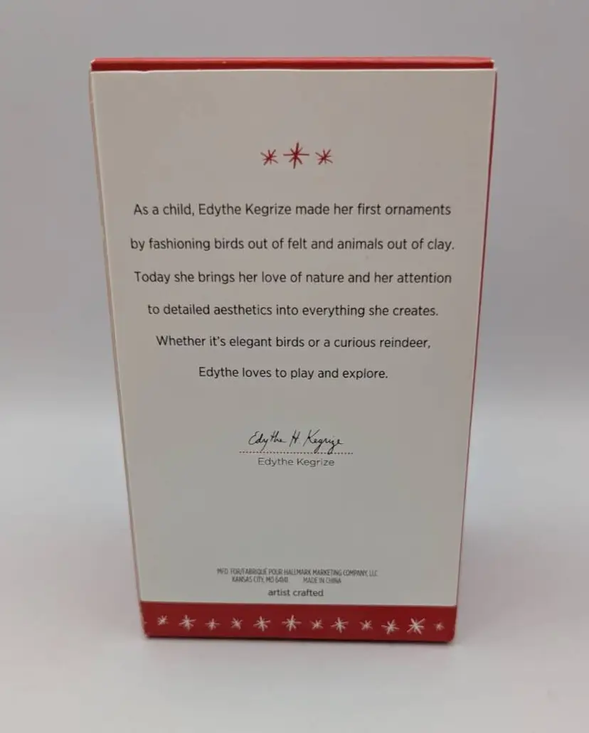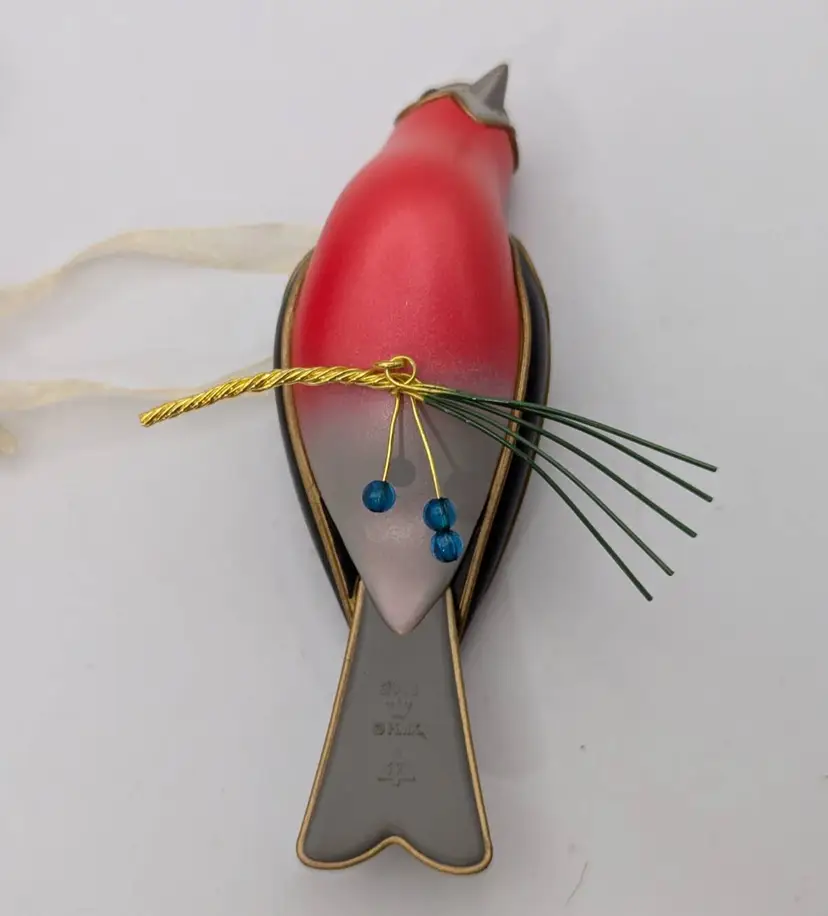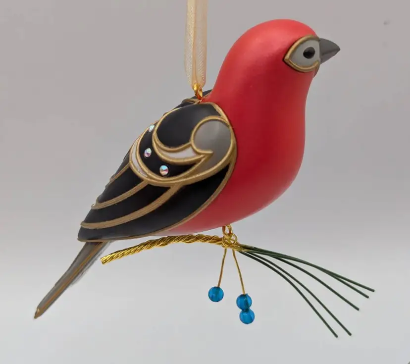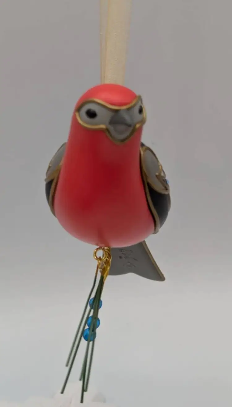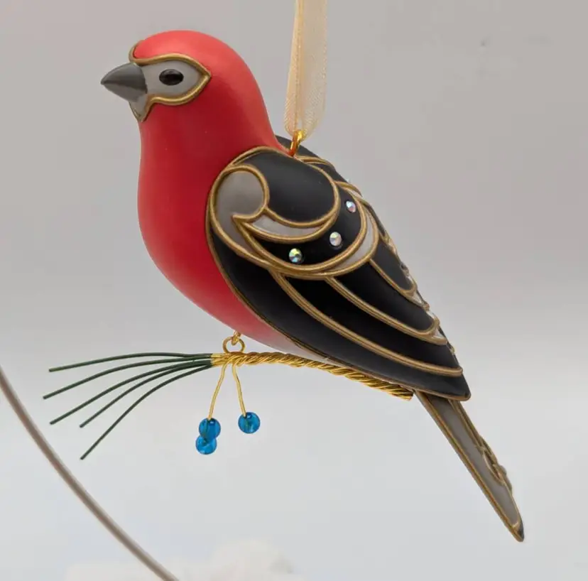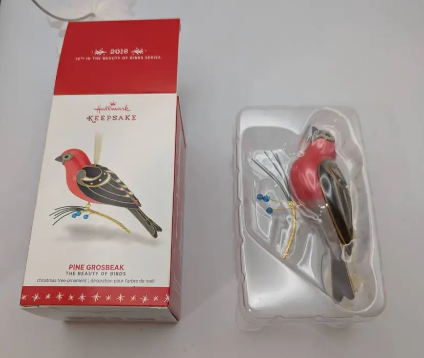 This is a Hallmark Keepsake Christmas tree ornament. It is #12 of the series : The Beauty of Birds. It is the Pine Grosbeak. I hung it on ornament hanger for photos- hanger not included. Original packaging. Artist Edythe Kegrize.