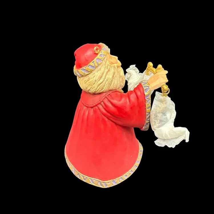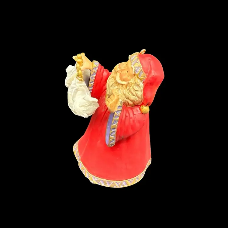 The Hallmark Keepsake Ornament The Decision Santa Claus Scale from Christmas 2003 is a vintage ornament featuring a Santa Claus shape in a multicolor design. This hanging ornament is perfect for adding a nostalgic touch to your holiday decor. Made with mixed materials and bearing the Hallmark brand, this vintage ornament is a charming addition to any Christmas tree.