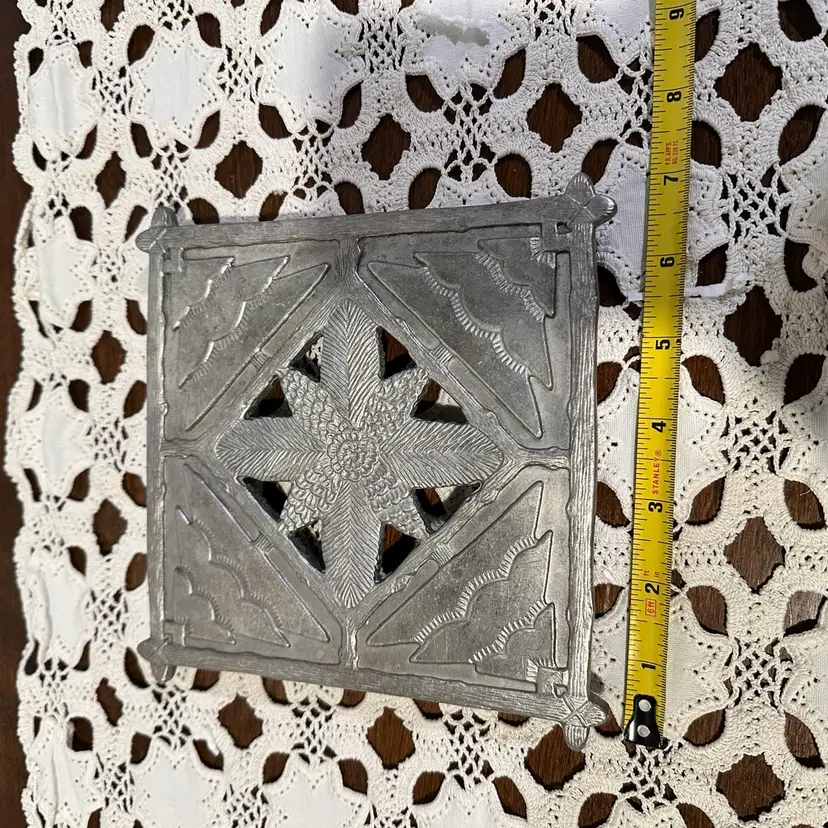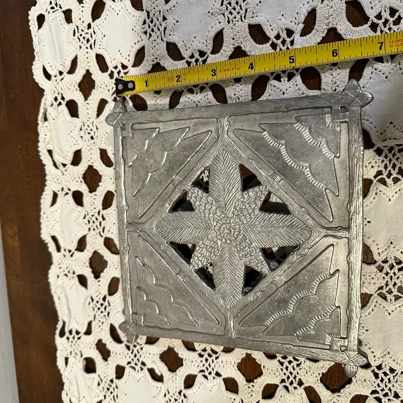 Hallmark Silver Colored Metal Christmas Tree & Rustic Pine Cones Trivet 7x7in.