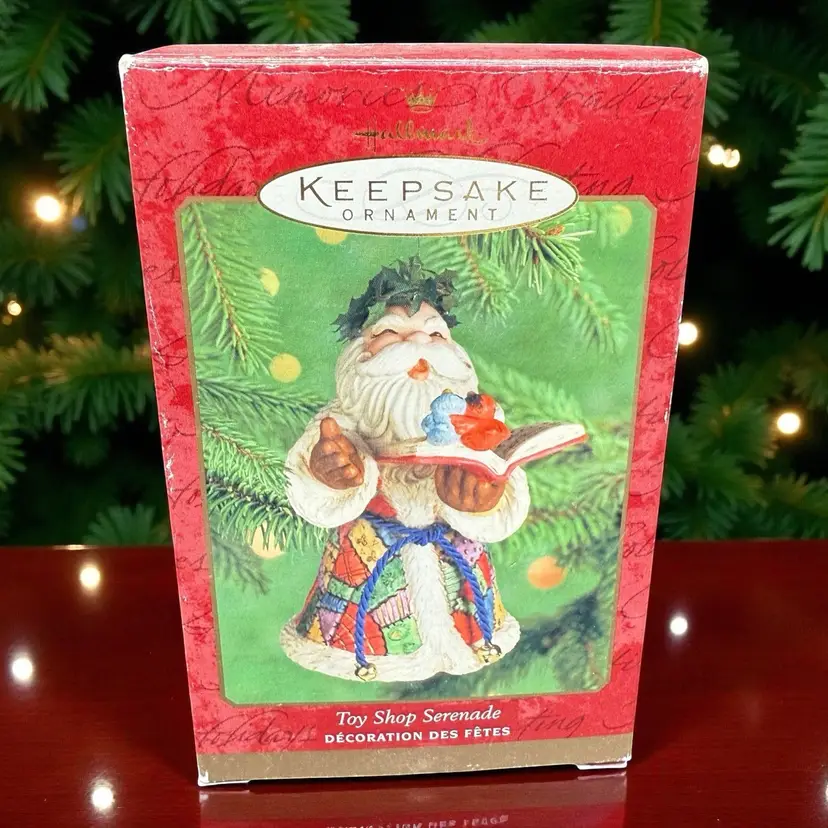 The Hallmark Toy Shop Serenade Santa Keepsake Ornament from Christmas 2000 features a patchwork coat design on Santa Claus, adding a unique and festive touch to your holiday decor. This small, multicolor ornament is handmade and vintage, making it a special addition to your Christmas tree. With its hanging feature and holiday theme, this Hallmark ornament is sure to bring joy and nostalgia to your seasonal celebrations.