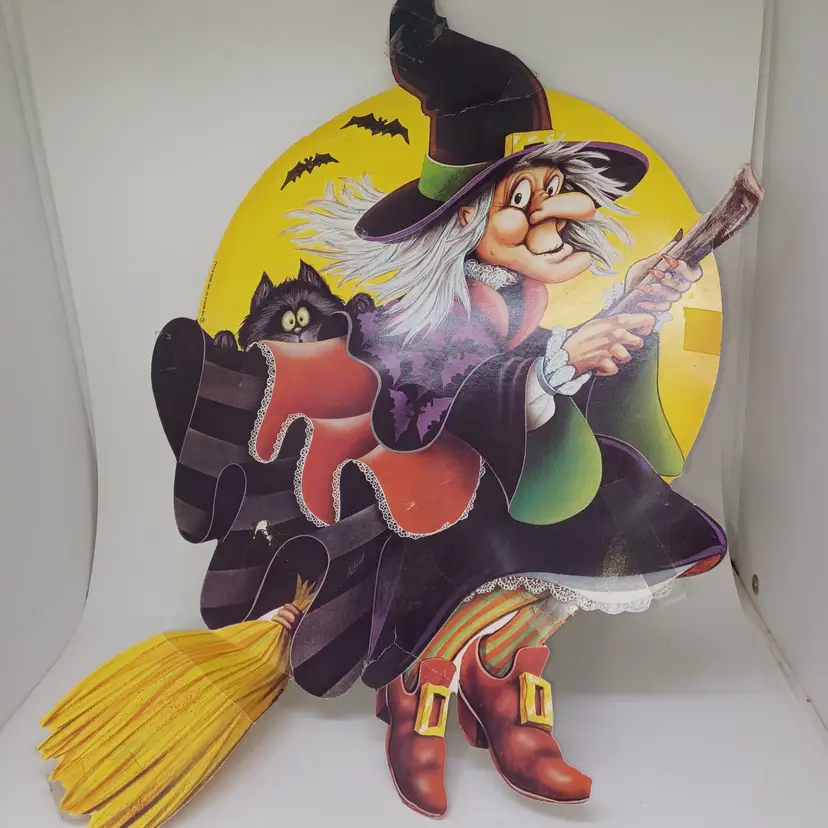 Vintage Beistle Halloween Decorama Diecuts Witch Pumpkin Ghosts Flocked Halloween 5 pcs Witch pumpkin scarecrow ghost tree scary tree flocked Halloween sign All in good use condition if you have some slight tears and tape markings or tape on the back but still very usable and will display great I'll please see all pictures as they are the best description all items from a smoke-free home with pets this item will be mailed in a cardboard "envelope" to help you save on shipping