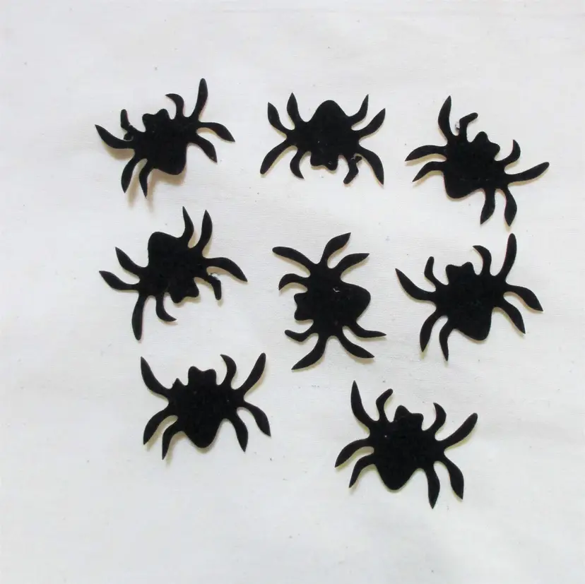 Vintage 80's fuzzy stickers: 8 black spiders 13 orange pumpkins