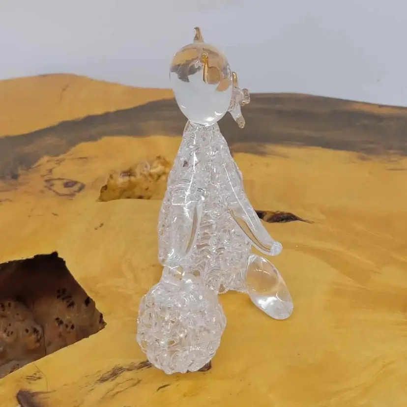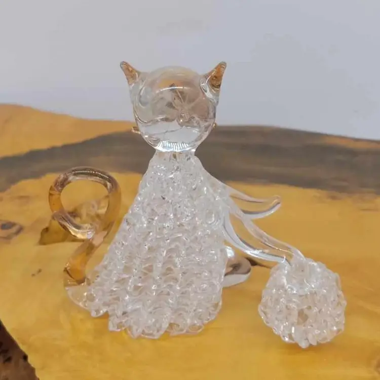 Here's a cute spun glass cat playing with a glass ball of yarn. He has gold whiskers, tail and ears. He's 3 1/4x 2 7/8 inches. No chips or cracks that I can see or feel.