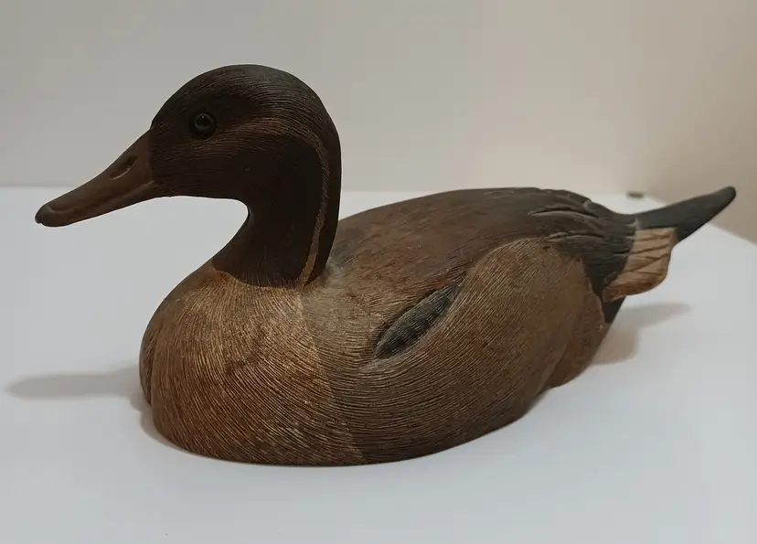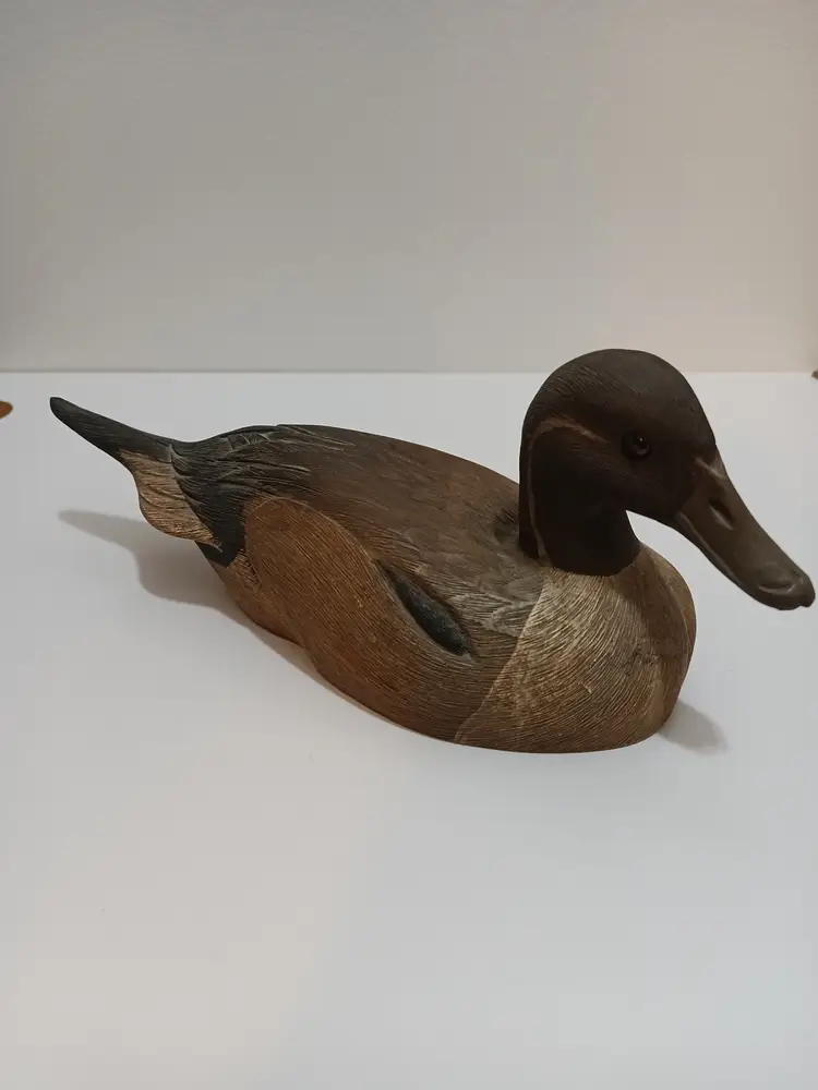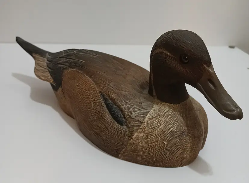 Nicely Hand carved Pintail Drake signed by carver O Gulledge & Dated 2-2-1985; Very Good Condition; 9.5" L x 3.5" W x 3.75" T