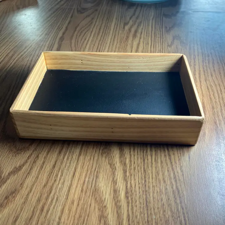 These are hand crafted dice trays made from repurposed cedar lattice and cedar fencing with a faux leather bottom. They measure approximately 5"W x 7"L x 1 1/2"H. Pattern may vary and will be shipped as they are grabbed.