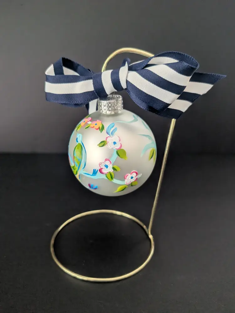 • Hand-painted glass with bird and floral motifs