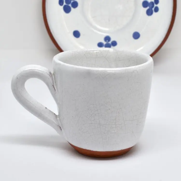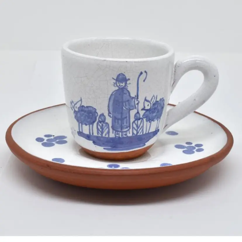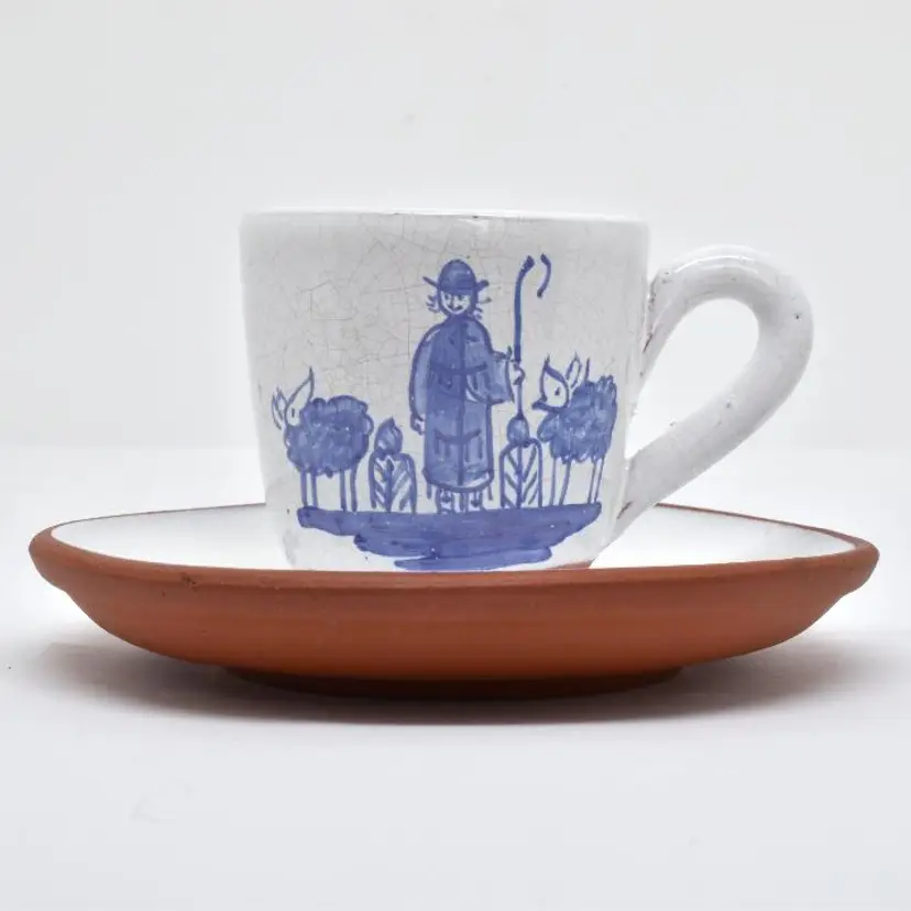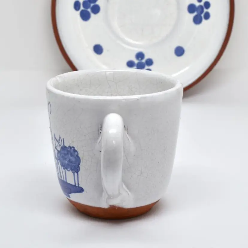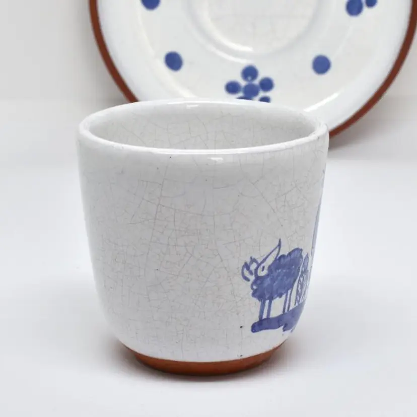 The cup is about 3" x about 2.25" x just over 2" tall. The saucer is about 4.5" in diameter. It is signed under the saucer.