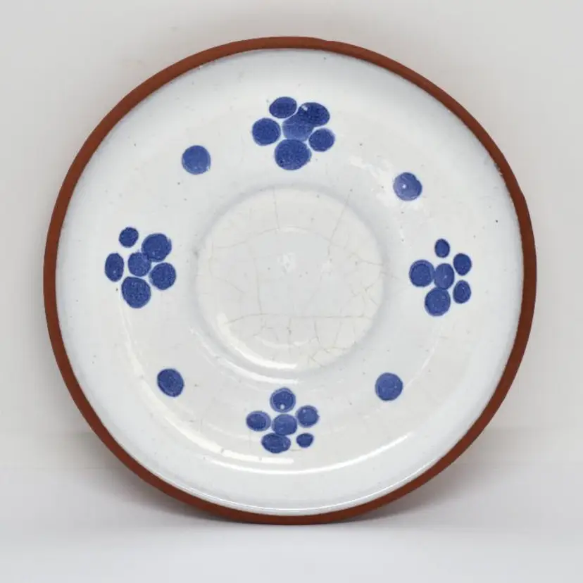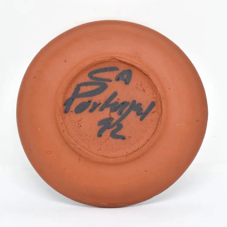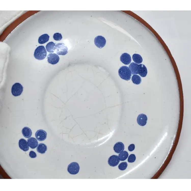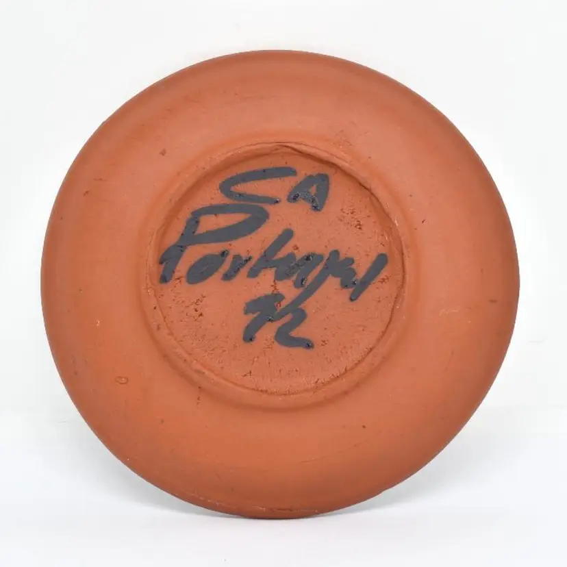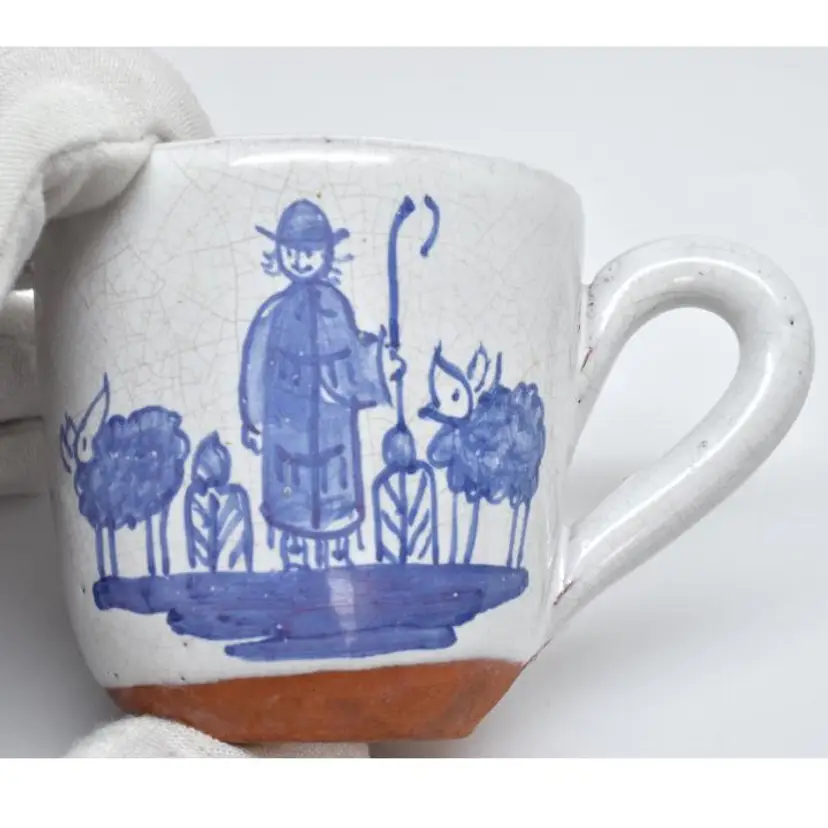The cup is about 3" x about 2.25" x just over 2" tall. The saucer is about 4.5" in diameter. It is signed under the saucer.