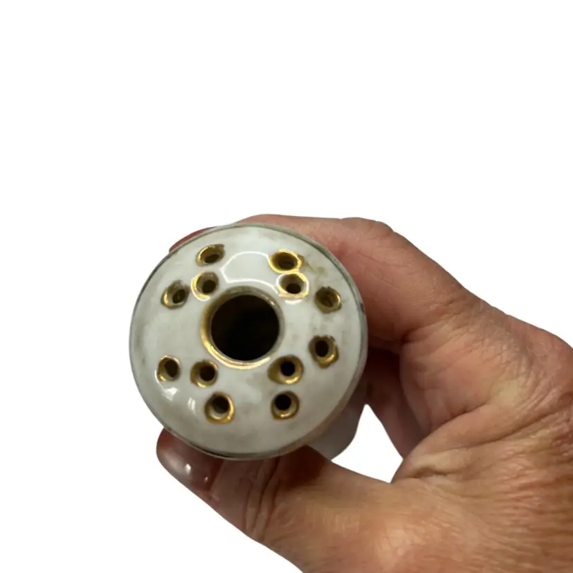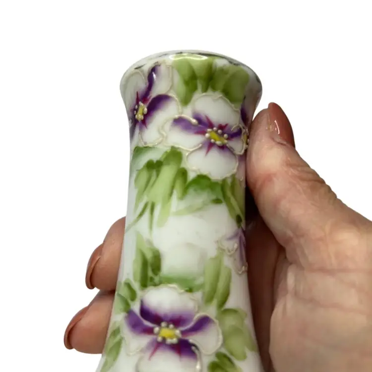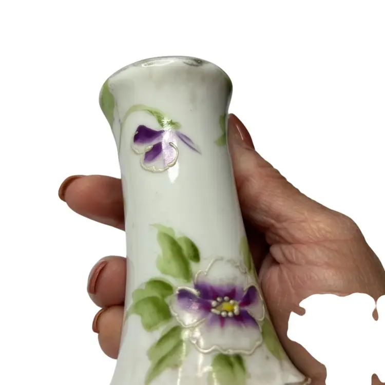 Hand Painted Violets Nippon 12 Hole Porcelain Hat Pin Holder @ 4” Tall @2” Base