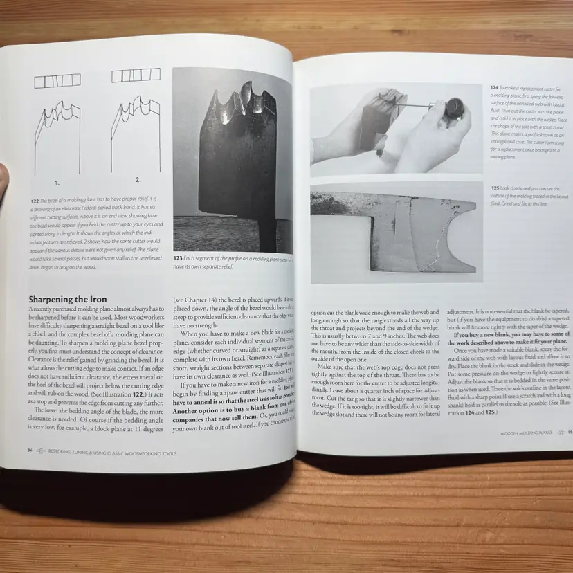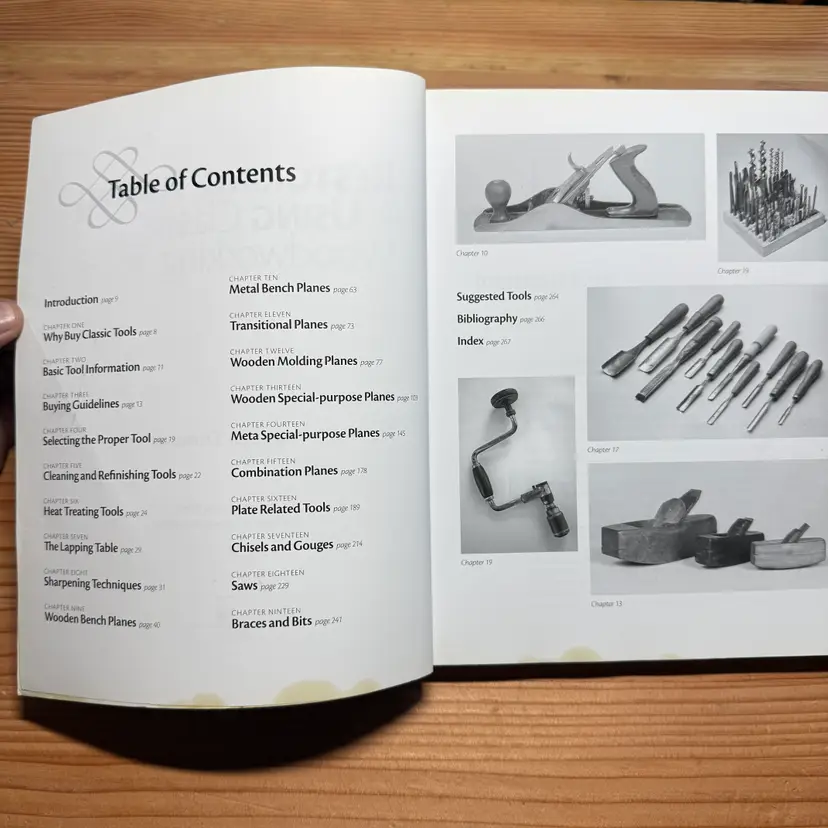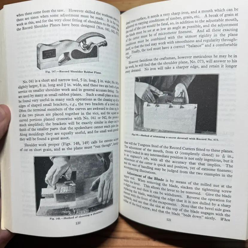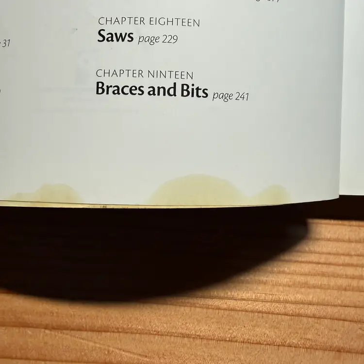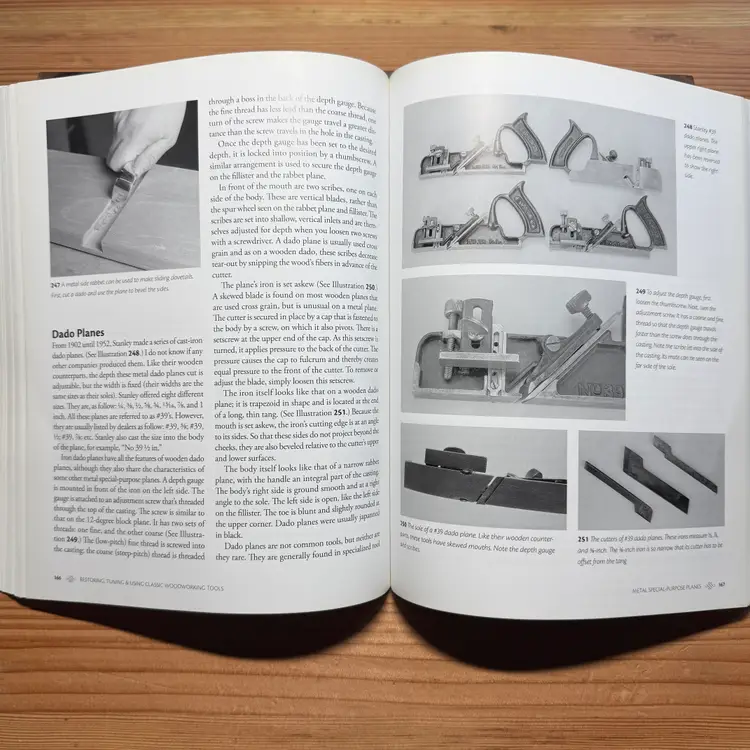 4 classic books on hand tools Planecraft Restoring, Tuning & Using Classic Woodworking Tools Fine Woodworking on Hand Tools Fine Woodworking on Planes and Chisels The bottom of a few pages of Dunbar's book have light (oil?) stains (see photos). #B1003