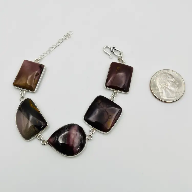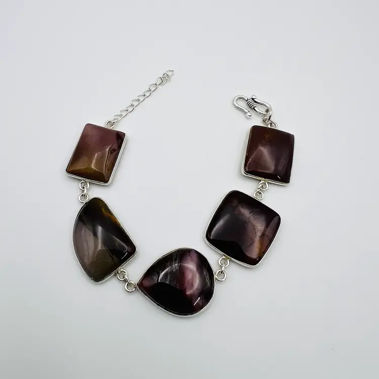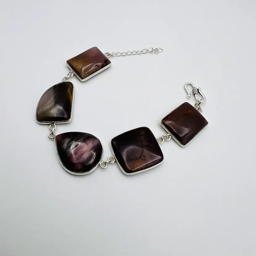 đź’Ž Handcrafted 5-Stone Mookaite Jasper Bracelet in Sterling Silver Finish