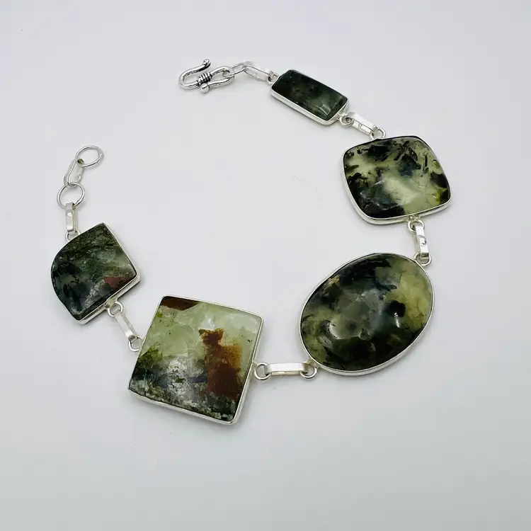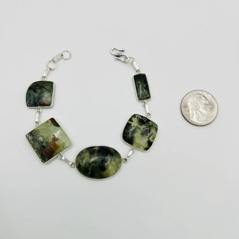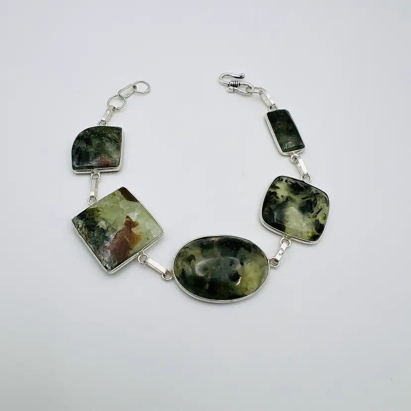 đź’Ž Handcrafted 5-Stone Prehnite Bracelet in Sterling Silver Finish