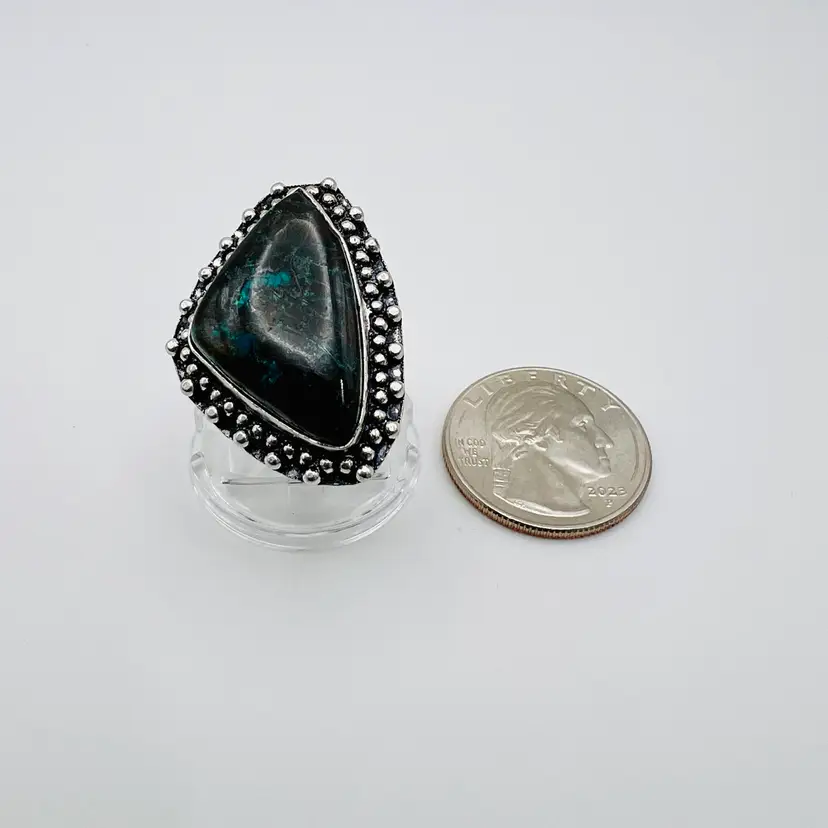 đź’Ž Handcrafted Azurite Ring (size 7.5) in Sterling Silver Finish