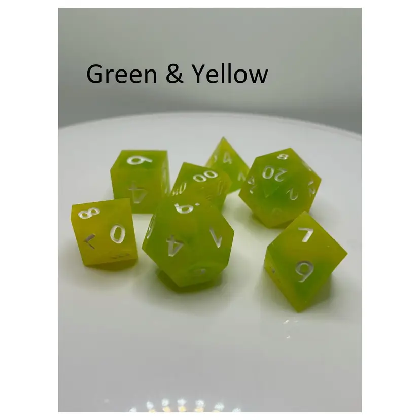 Handmade dice set consisting of D4, D6, D8, D10, D%, D12, D20