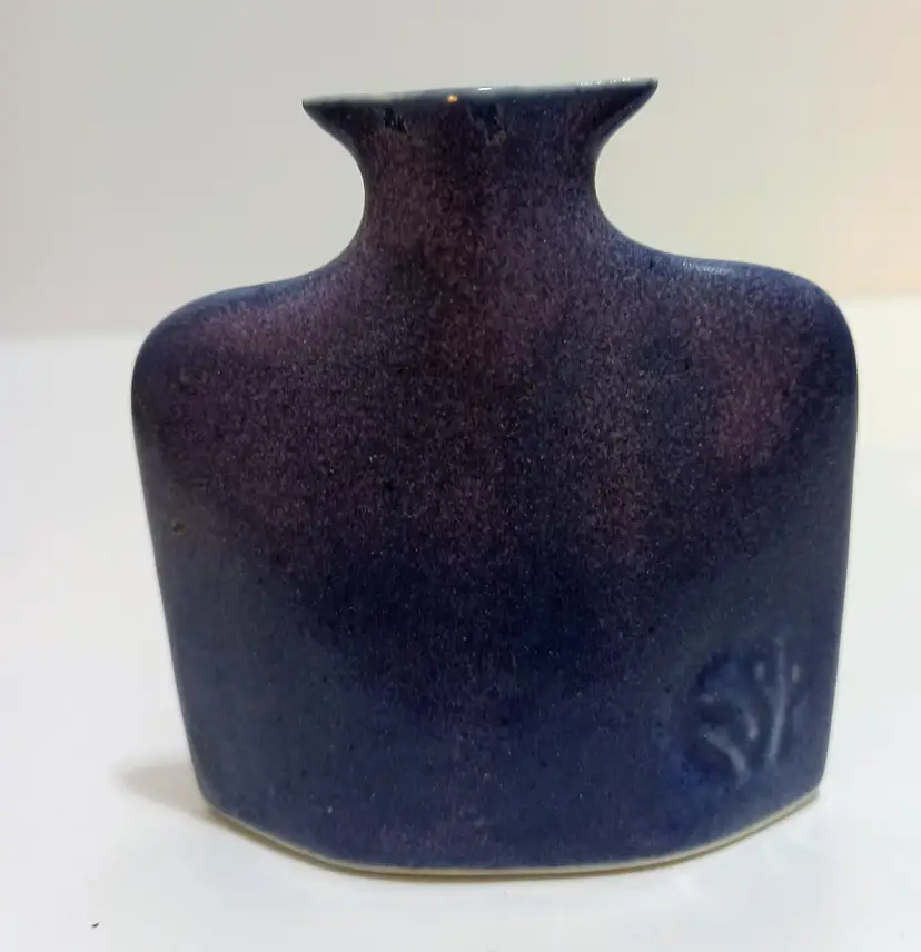 Darling Handmade Bud Vase by Earth and Sky Pottery; Gorgeous Shades of Purple; A Work of Art! Signed on Bottom and Imprinted on Back;No Chips or Cracks or Scuffs; 3" T x 3" W; Bottom is 1" D