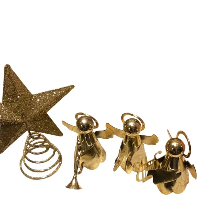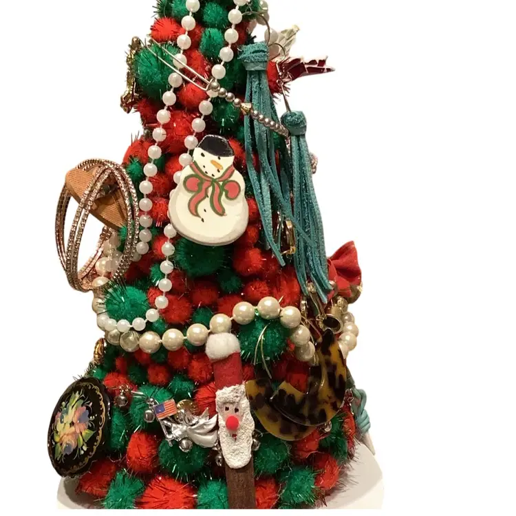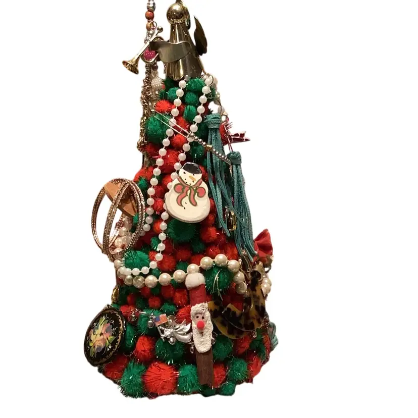 Handmade Christmas tree made by me as bracelets, earrings, neck, necklaces, a little bit of everything on it handmade by me you have a choice of three different angel toppers or a star topper your choice. Choice of topping star top angel with a horn angel with symbols and angel with a harp. Your choice.