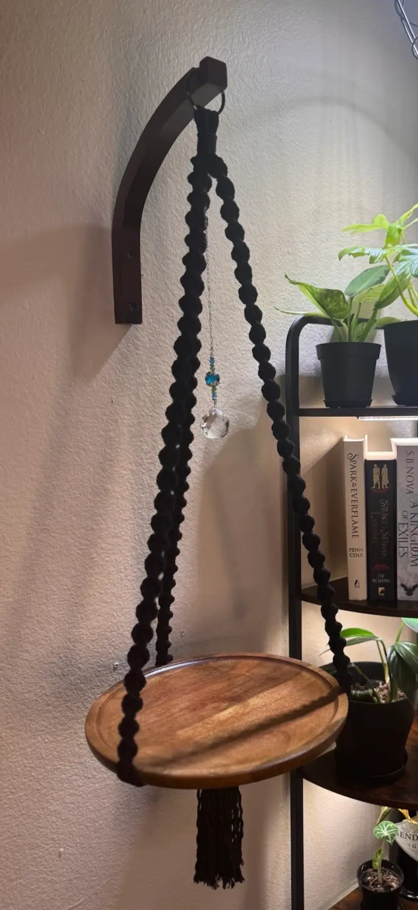 ✨ Handmade with care 🖤 Thick twisted cord for a sculptural, modern look 🌲 Solid wood base 💎 Crystal suncatcher 🔩 Optional wall mount and screws