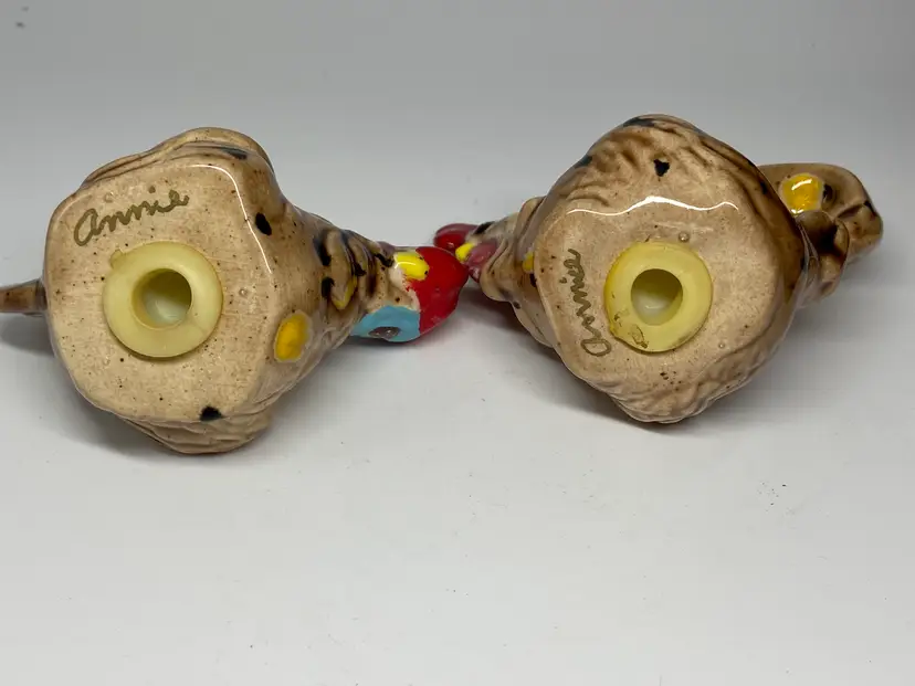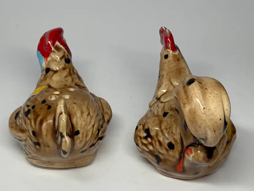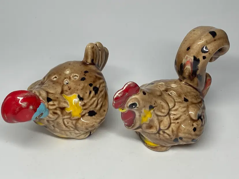 Enhance your dining experience with these charming handmade ceramic salt and pepper shakers, featuring a cheerful chicken and rooster design. Each piece is meticulously crafted and signed by the artist, ensuring a unique addition to your kitchen collection. With vibrant multicolor accents, they bring a rustic yet whimsical touch to any table setting. These shakers measure 2.75 inches in height and 3.5 inches in width, perfectly sized for easy handling and storage. The set includes one pepper shaker, with the salt shaker implied, and together they weigh a sturdy 2.7 ounces. Ideal for both functional use and decorative display, they promise to be a delightful conversation starter at your next gathering.