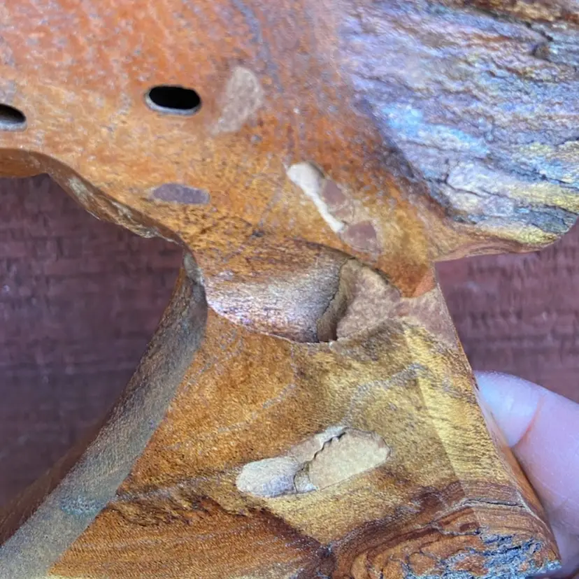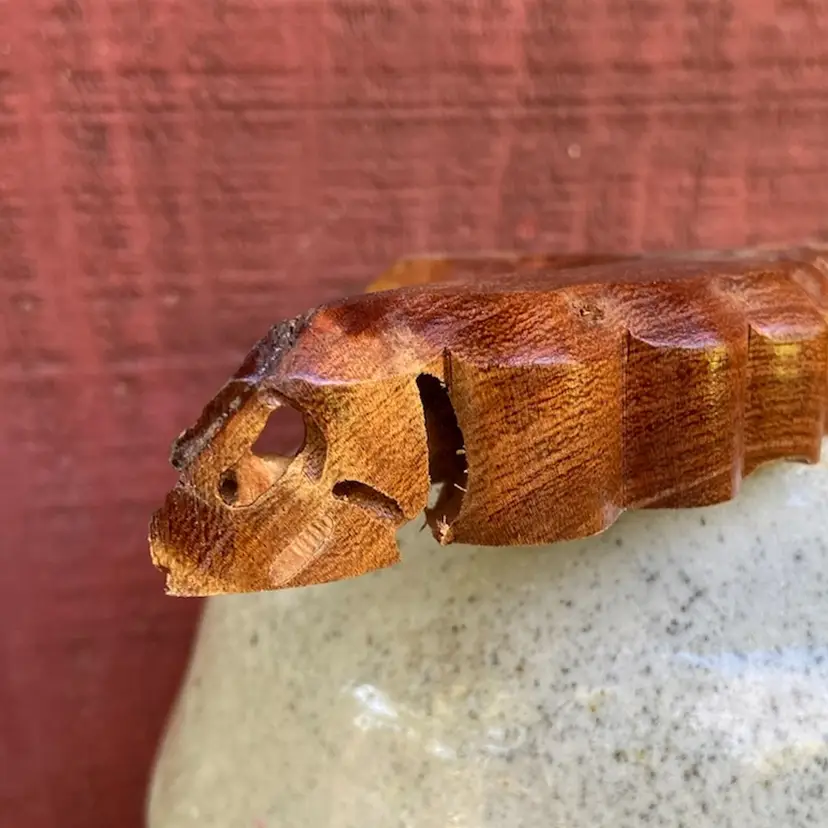 Approx: 8”w x 7.25”h x 1”d. Hole for hanging. Pre-owned condition. Natural imperfections in surfaces. Some sticker residue on back.