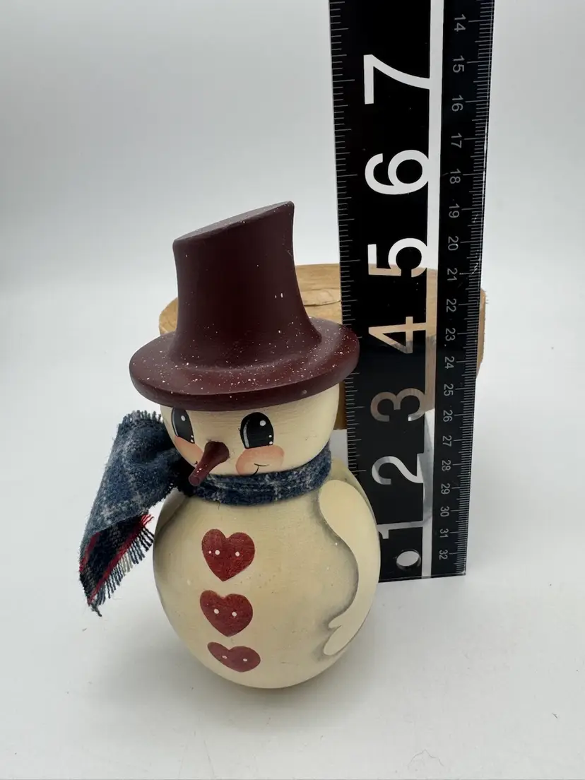 This sweet little wood snowman is in great condition. Beautifully painted. Please ask all questions before buying. Thanks!