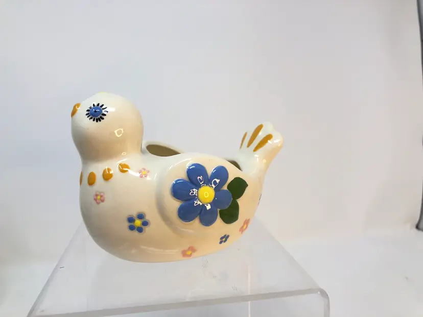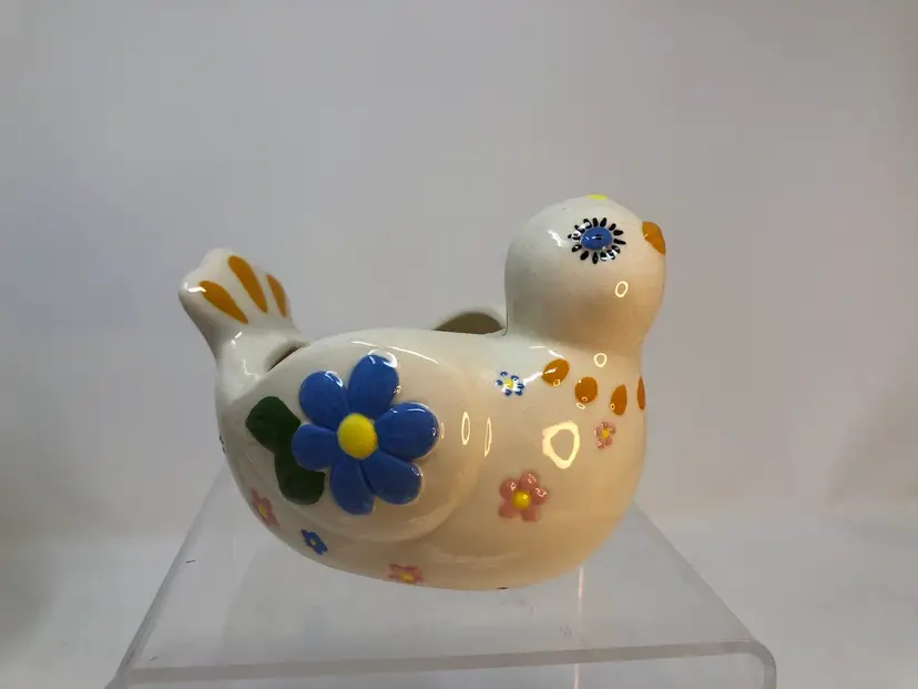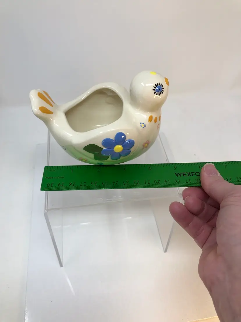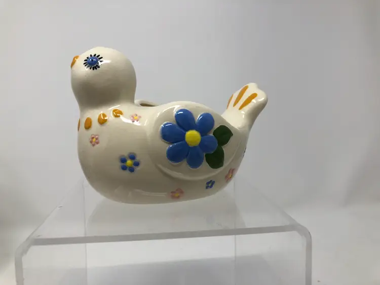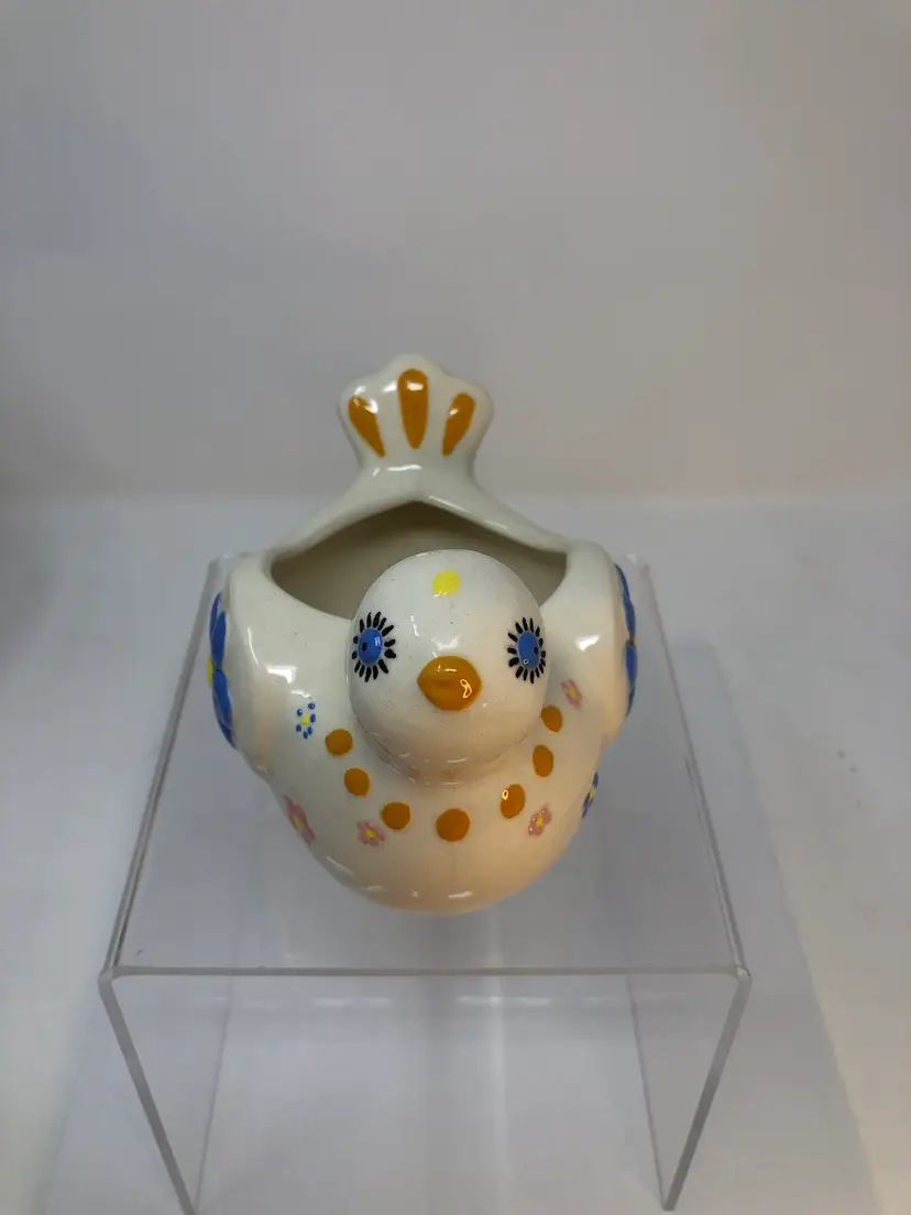 4" ceramic bird planter, signed and dated on the bottom. No chips or cracks 1978