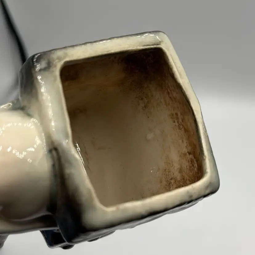 5 1/2” x 6” no chips or cracks, did have a plant at one point dirt on the inside
