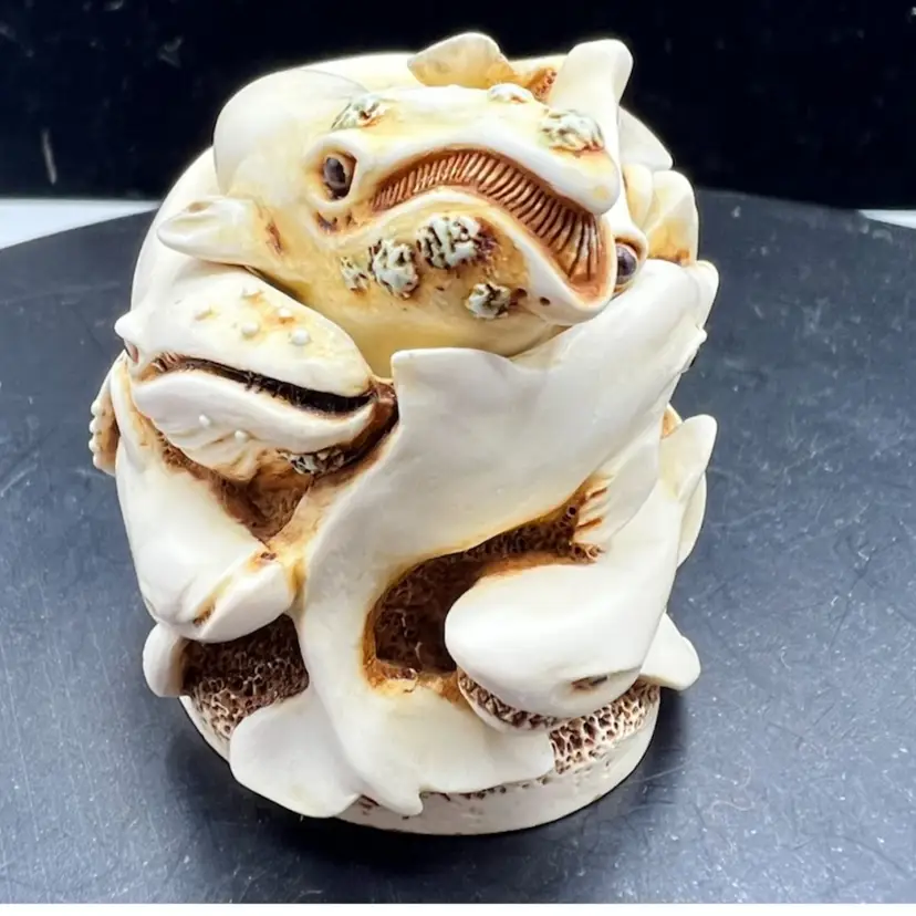 THIS IS 2 DOLPHINS,W2 BALEEN WHALES, 1 HAMMERHEAD SHARK AND ON GREAT WHITE SHARK THIS IS THE FIRST GCC EXCLUSIVE DONE FOR HK. ON THE INSIDE IS MAD MURPHY AND HE HAS FOUND A TREASURE CHEST FULL OF MONEY HE IS INDOCTRINATING THE INNOCENT FISHY’S INTO GREED AND MATERIALISM. THERE IS A MOUSE PEEPING TO FIND.