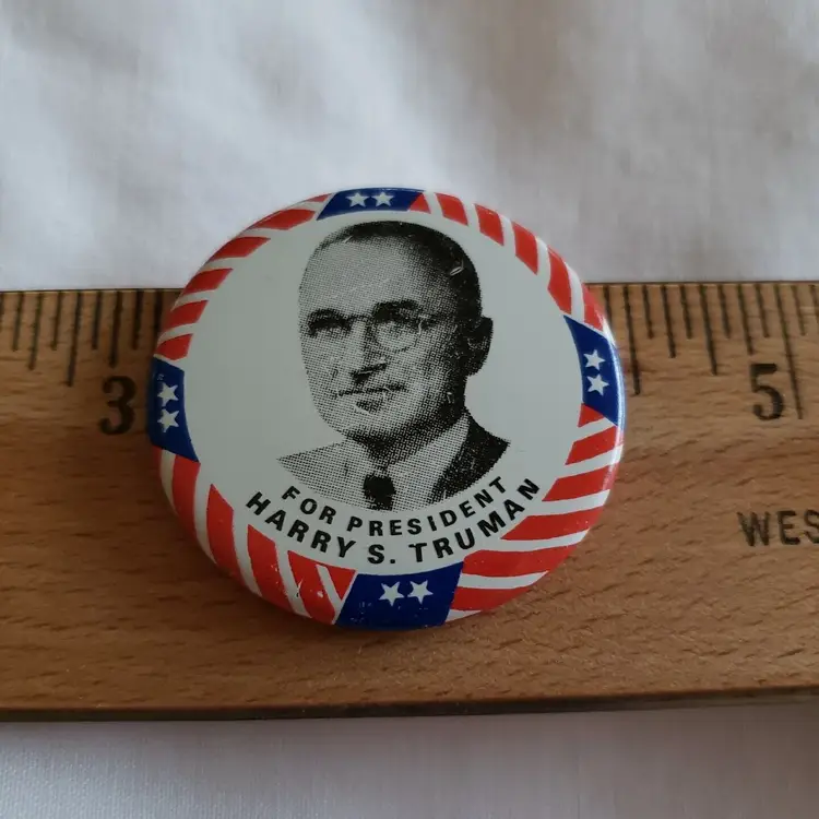 For President Harry S Truman 1968 Reproduction Button 1984 approximately 1 1/2" diameter.