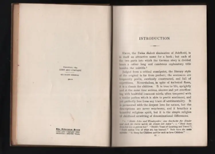 This copy of Heidi carries the designation Home And School Library to denote this was specially selected for moral and educational lessons in school and home. Published by Ginn And Company.