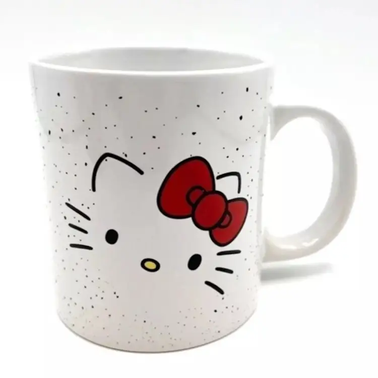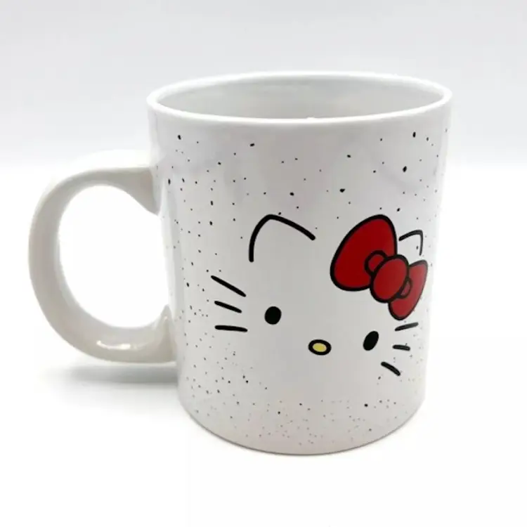 HELLO KITTY Face Head 20oz Ceramic Mug Sanrio Speckled White Large Cup 2022