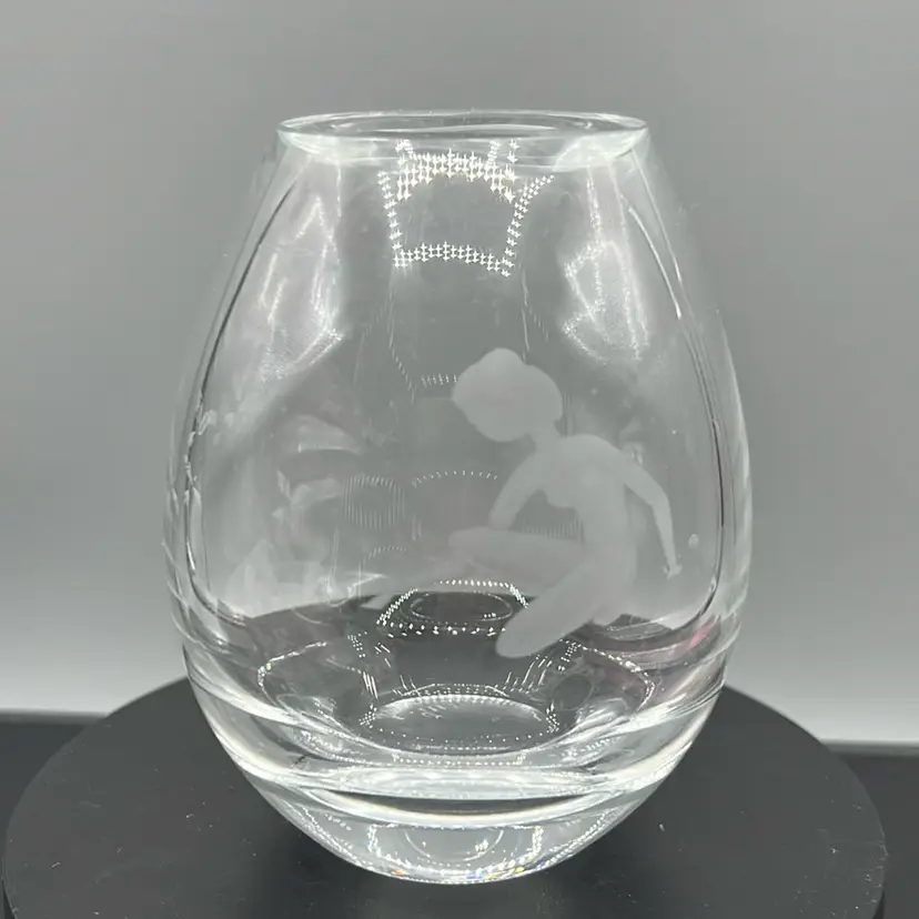 The image shows a Holmegaard "Susanne" series vase, specifically the "Sitting" or "Kneeling" version, designed by Per Lütken in the 1960s