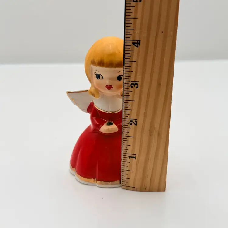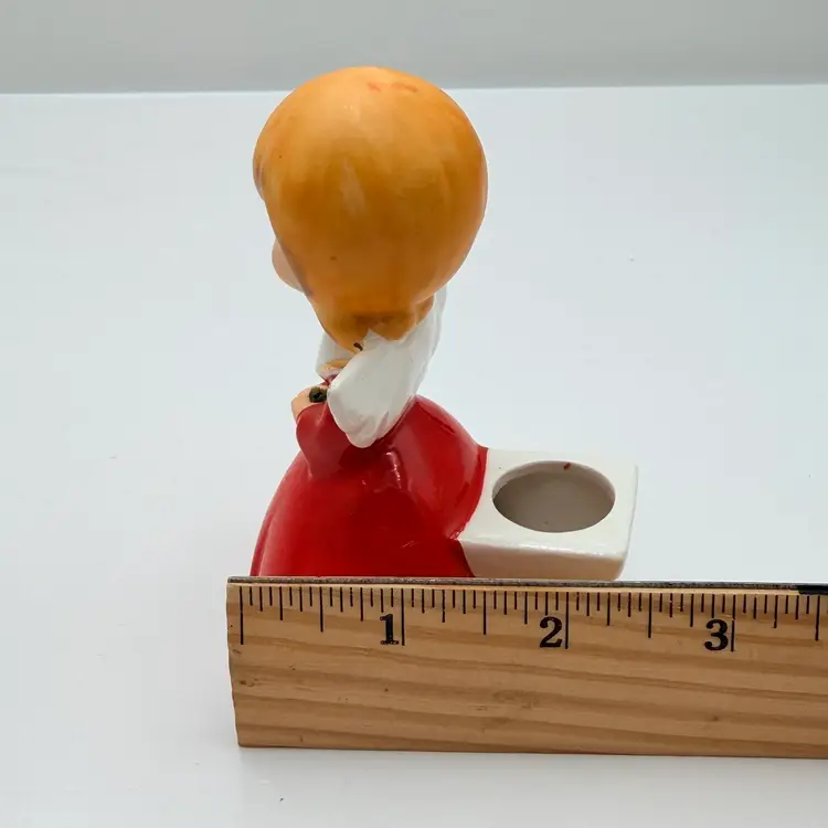 As shown 4 inches tall by 2.5 inches wide No chips or cracks but her berry bouquet is missing