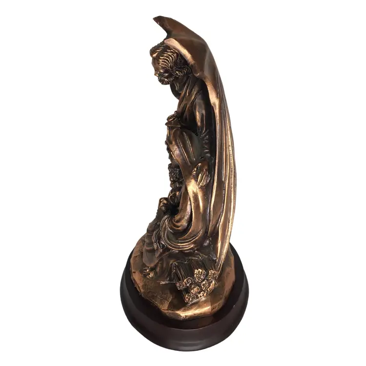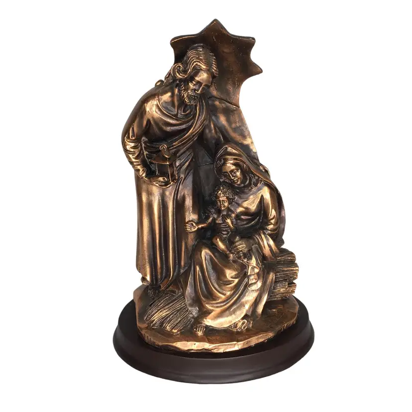 Holy Family 8" Figurine Joseph Mary Baby Jesus Cold Cast Bronze On Oval Base