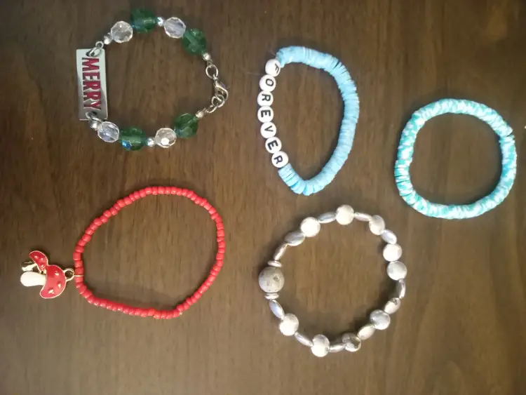 8 piece of Homemade Jewelry. Some Vintage and a few newer. 5 bracelets 3 necklaces.