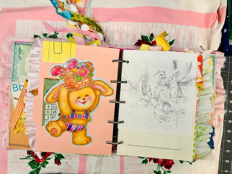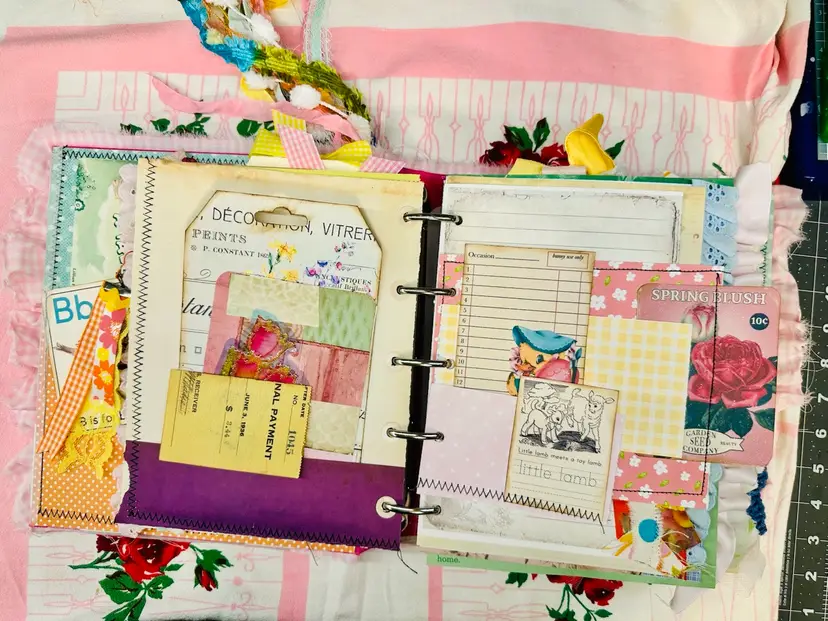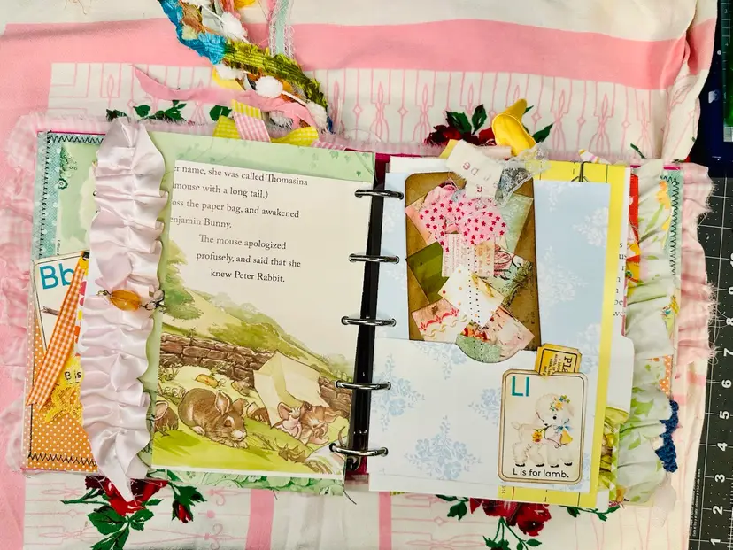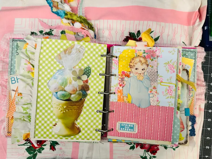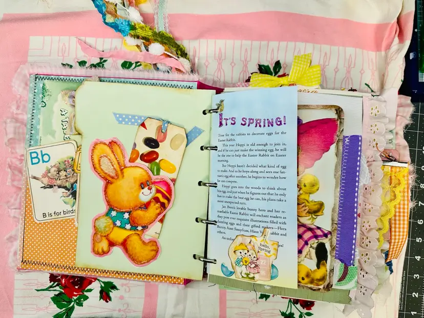 ✨ Features: • Altered from a vintage Better Homes & Gardens cookbook cover (10x12 inches) • 86 pages front & back filled with pastel papers, journaling spots, and vintage-inspired details • Lots of interactive elements – pockets, tags, tuck spots, and embellishments • Cheerful bunny cover with pom pom trim makes it perfect for Easter, spring memories, or gift-giving • Designed for use as a memory keeper, daily journal, or creative planner