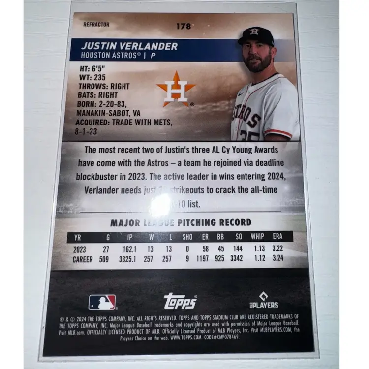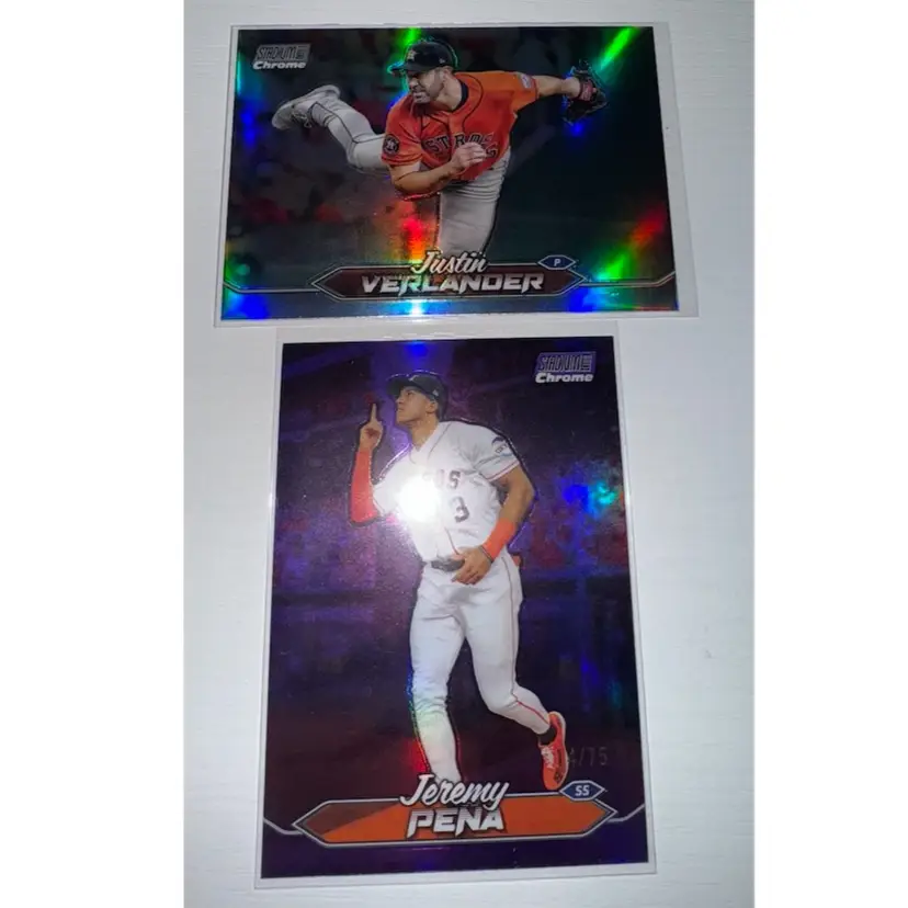 This 2 Card Lot Includes: Jeremy Pena 2024 Stadium Club Purple 14/75 Justin Verlander 2024 Stadium Club Chrome Refractor