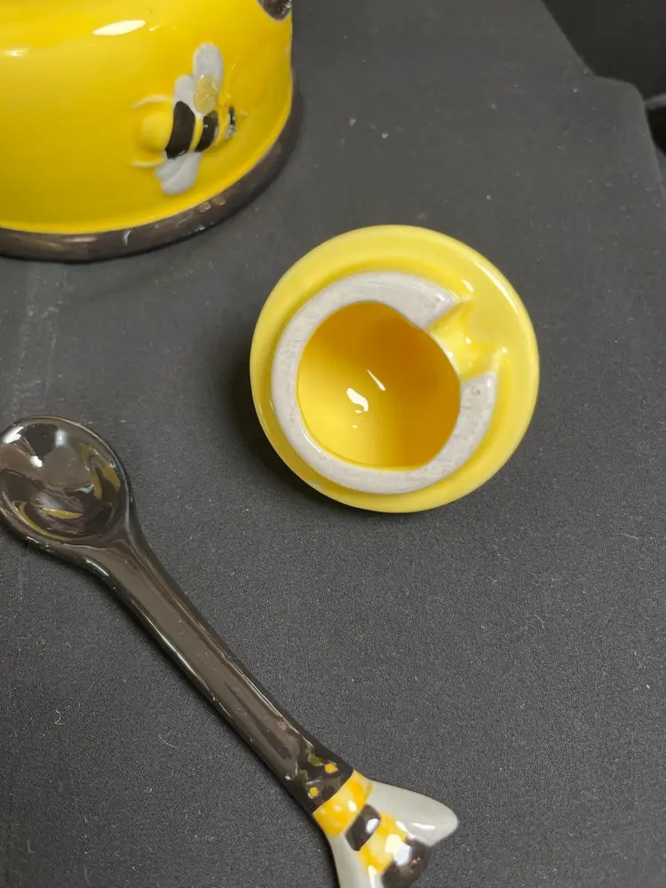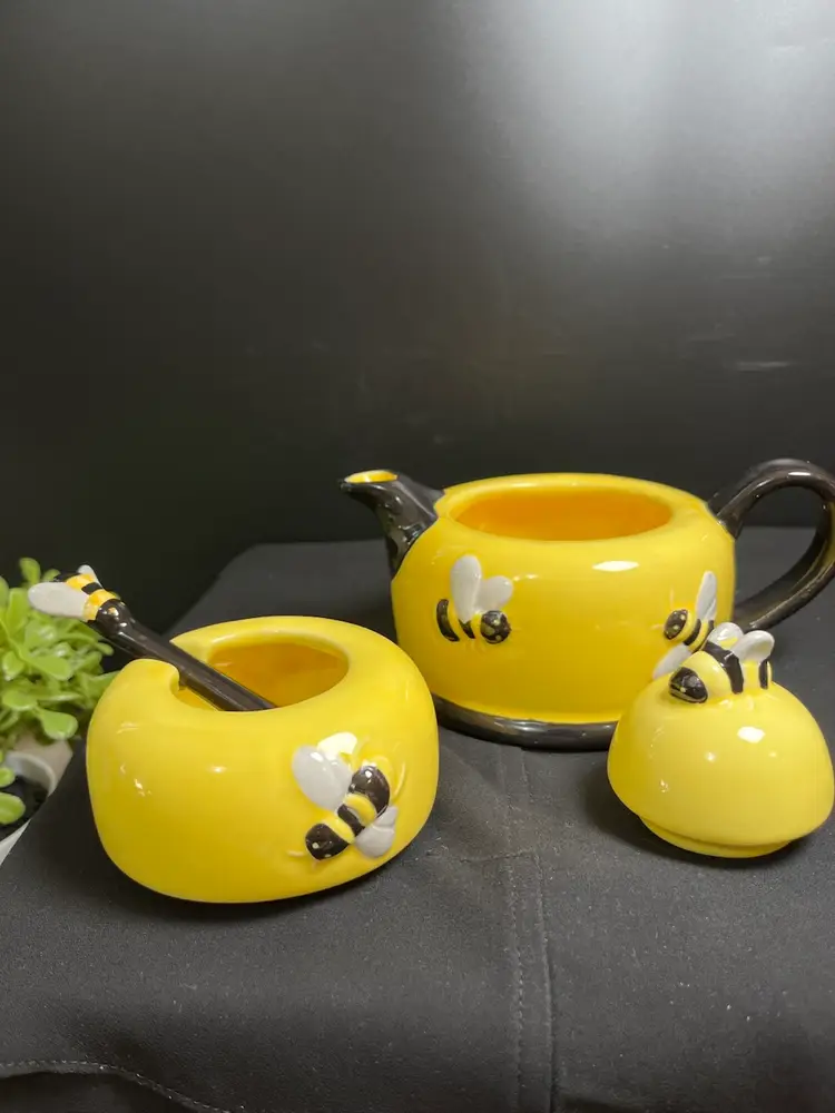 This is just as cute as can BEEEEEE! This is in excellent condition and has no call outs at all. Measures approx 6.25"H, Spout to end of handle 6.75", 1 Lb