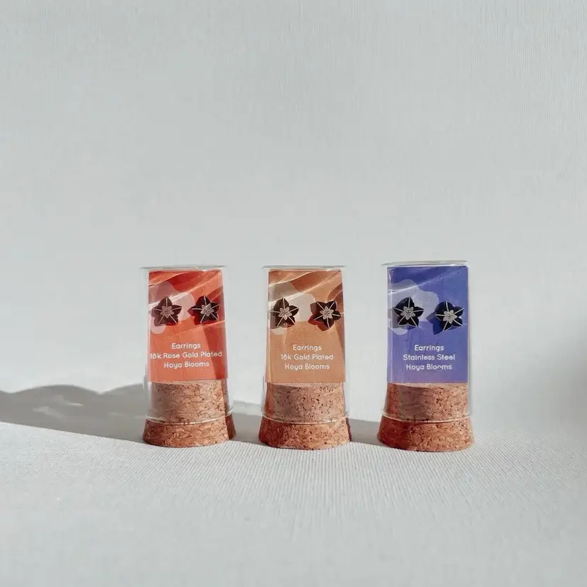 Hoya Blooms 18k gold plated, 18k rose gold plated, or stainless steel 8mm X 8mm (HxW)