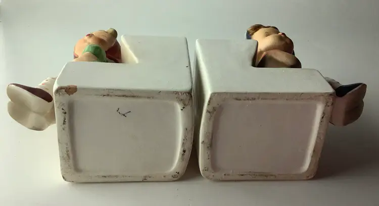 These planters measure 4” x 4”. In good condition. Tiny signature on bottom of girl. Please see photos. Thanks for looking! These were two of my Moms favorites…I ship 3 day UPS. Secure, bubble wrap packing. Thanks!