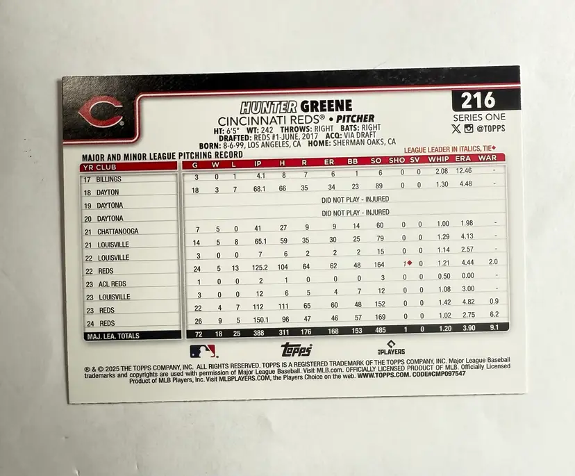 Hunter Greene 2025 Topps Series 1 Spring Training Foil #216 Cincinnati Reds